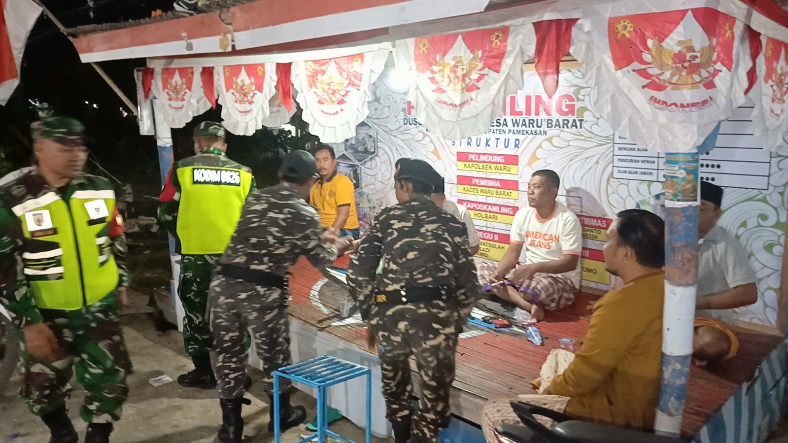 Patroli gabungan tersebut dipimpin oleh Pelda Johan Arif dengan menyasar sejumlah titik yang dianggap strategis. Rombongan menyambangi Desa Waru Barat dan melakukan pengecekan langsung ke poskamling yang berada di Dusun Tobalang 1 dan Dusun Tobalang 3.