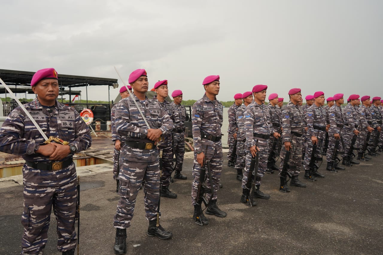TNI AL, Pasmar 1. Prajurit Batalyon Marinir Pertahanan Pangkalan (Yonmarhanlan) l Belawan melaksanakan Upacara Bendera 17an di Lapangan Apel Makodearal l Jl. Serma Hanafiah No. 01 Belawan, Kota Medan, Jumat (17/10/2025).