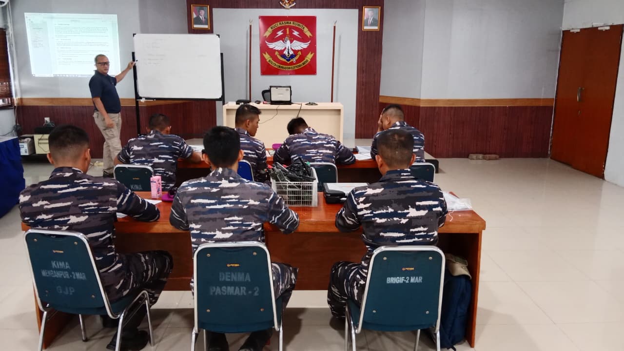 TNI AL, Pasmar 1. Prajurit Batalyon Komunikasi dan Elektronika 1 Marinir (Yonkomlek 1 Mar) mempelajari Sistem Perkuat Kerja Sama Komunikasi dan Ranpur untuk pertahanan yang lebih baik di Ruang Rekreasi Yonkomlek 1 Kesatrian Marinir Hartono Cilandak, Jakarta Selatan, Minggu (19/10/2025).