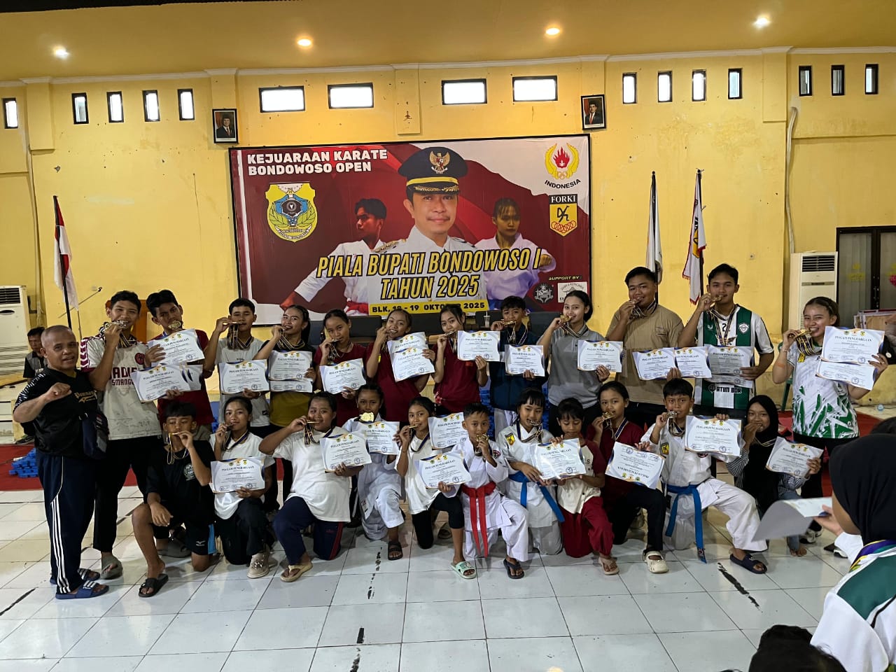 Dispen Kormar (Banyuwangi) PW : Sederet atlit karate binaan Puslatpurmar 7 Lampon berhasil sabet medali kejuaraan, dalam rangka Kejuaraan Karate Nasional (Kejurnas) Karate Forki Jatim Piala Bupati Bondowoso Ke. I Th.2025 di GOR Bondowoso, Senin (20/10/2025). Dalam momen ini karate binaan Puslatpurmar 7 Lampon berhasil menggondol piala dalam kejuaraan Karate Piala Bupati Bondowoso Ta.2025. Diantara atlit tersebut merupakan anak dari anggota Puslatpurmar 7 Lampon 1. M. Ali Akbar (14) Juara I Komite Perorangan Kadet Putra, putra dari Serka Mar Kurniawan 2. Bintang Gemilang Irawan (17) juara I Kata perorangan putra,…