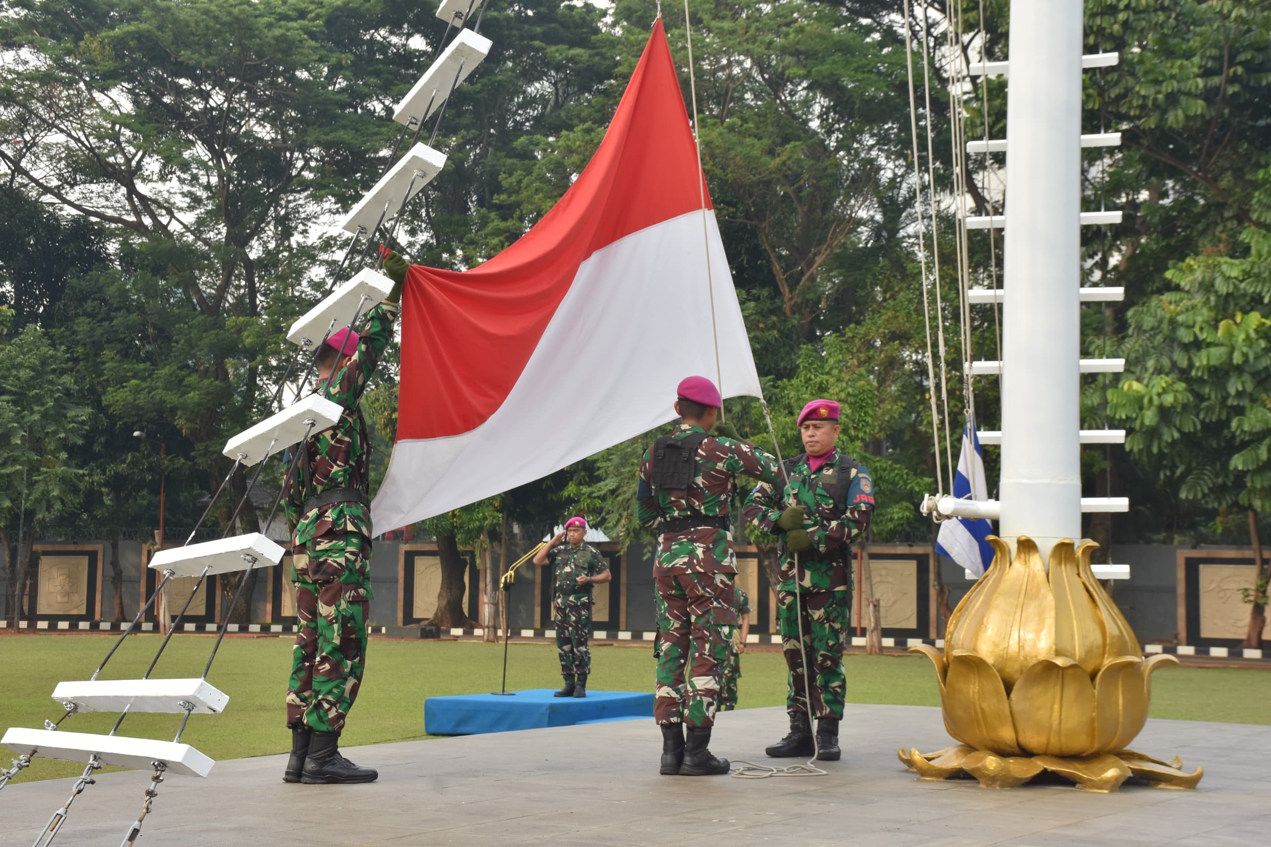 (Jakarta).* Prajurit dan Pegawai Negeri Sipil (PNS) Markas Komando Korps Marinir (Mako Kormar) melaksanakan upacara penaikan bendera merah putih yang berlangsung di Lapangan Apel Mako Kormar, Kesatrian Ali Sadikin, Jl. Prajurit KKO Usman dan Harun No. 40 Jakarta Pusat. Senin (20/10/2025).