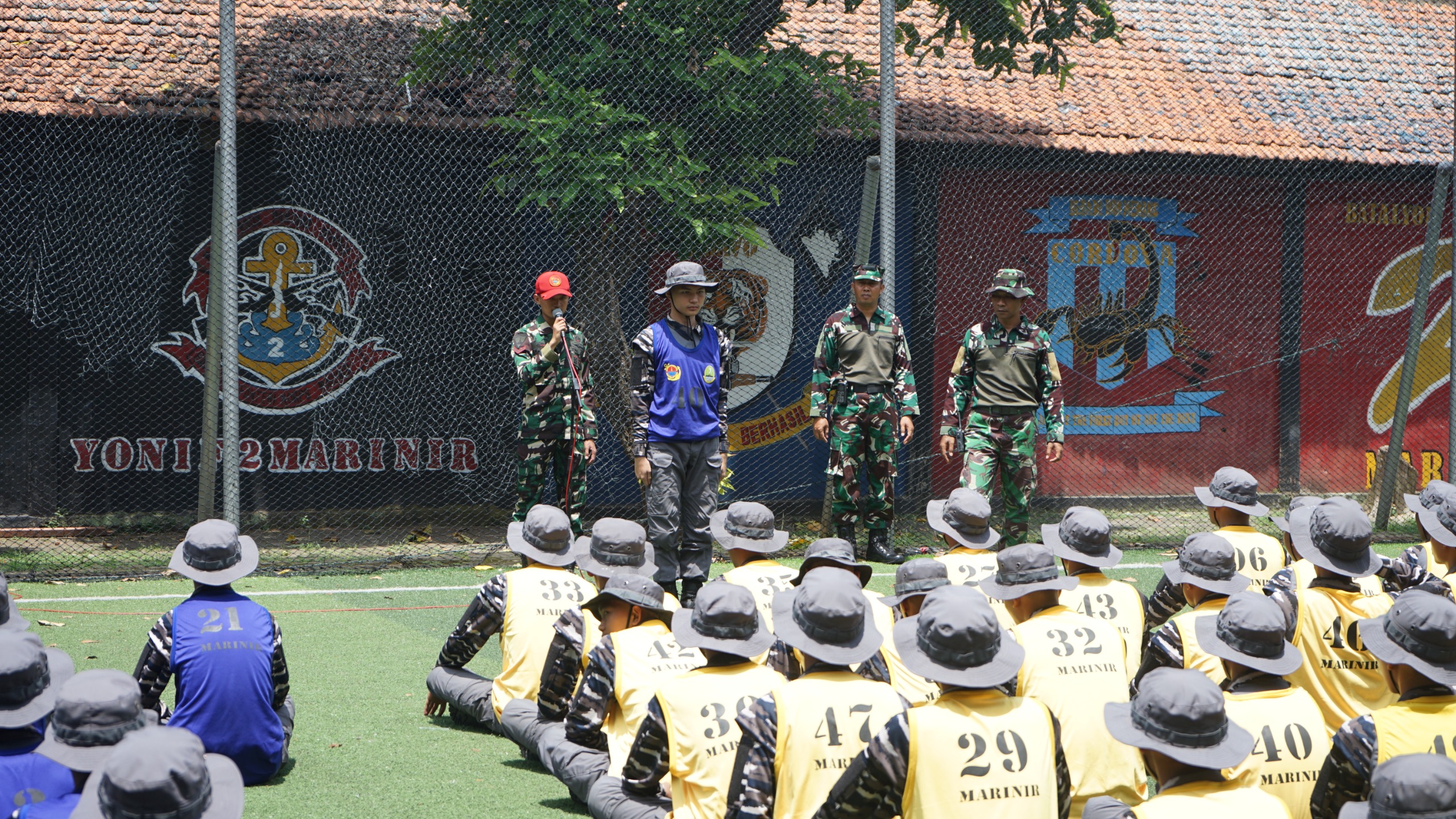 TNI AL, Dispen Kormar, Pasmar 1 (Jakarta). Dalam rangka mendukung kegiatan Pendidikan Gapura Panca Waluya Batch VI, prajurit Yonif 2 Marinir memberikan materi tentang cara memberi instruksi (CMI) kepada para siswa peserta pendidikan Gapura Panca Waluya Batch VI yang bertempatan di Lapangan Futsal Yonif 2 Marinir, Cilandak, Jakarta Selatan, Rabu (22/10/2025).