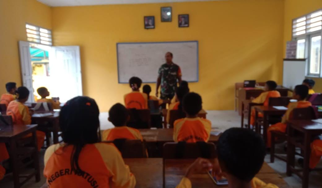 SBB PW 23 Oktober 2025 — Bertempat di SD Negeri Hatusua, Kecamatan Kairatu, Kabupaten Seram Bagian Barat, Babinsa Desa Hatusua Koramil 03/Kairatu Serda Petrus Noija melaksanakan kegiatan Pembinaan Wawasan Kebangsaan (Wanwil) dengan memberikan materi tentang Pancasila kepada siswa-siswi kelas II.