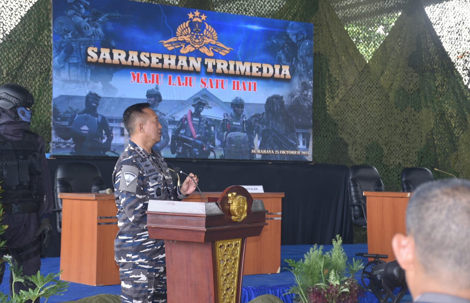 Dispen Kormar, TNI AL (Surabaya) PW : Sarasehan Tri Media yang diselenggarakan di Denipam 2 Marinir, Kesatrian Marinir Sutedi Senaputra Karangpilang, Surabaya. Sabtu (25/10/2025).
