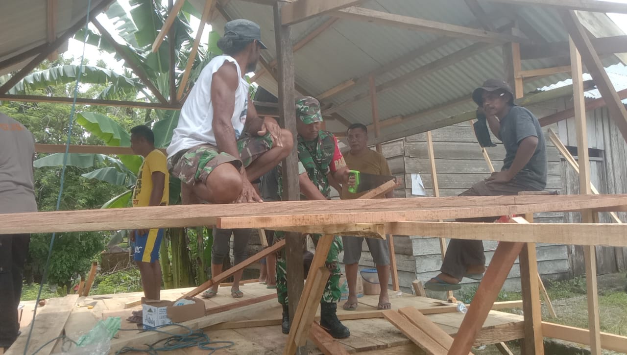 Babinsa Pulau Osi Bersama Warga Binaan Laksanakan Kerja Bakti Pembangunan Pos Ronda
