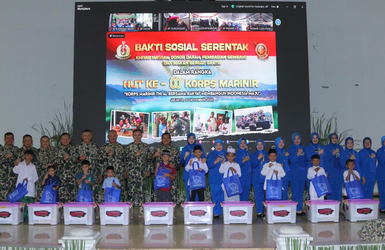 TNI AL, Dispen Kormar, Pasmar 1 (Jakarta). Komandan Pasmar 1 (Danpasmar 1) Mayjen TNI (Mar) Ili Dasili, S.E., mengikuti acara Bakti Sosial, Khitanan Massal dan Donor Darah yang digelar di Gedung Balai Prajurit Lanmar Jakarta, Cilandak, Jakarta Selatan, Rabu (05/11/2025).