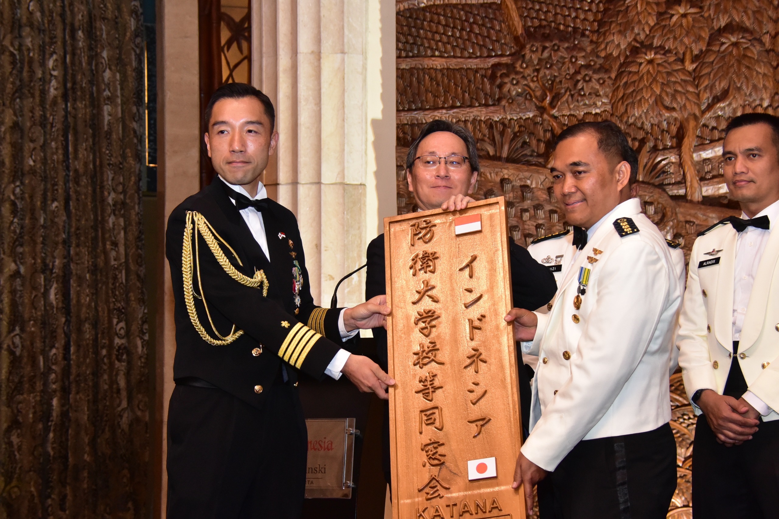 Acara resepsi juga diisi dengan penyerahan papan nama organisasi alumni studi TNI JSDF “KATANA”, ucapan bersulang (toast), serta jamuan makan malam bersama yang berlangsung dalam suasana akrab dan penuh kehangatan. Kegiatan berjalan aman, tertib, dan lancar, mencerminkan eratnya hubungan persahabatan dan kerja sama antara TNI dan Japan Self Defence Force dalam membangun kawasan Indo-Pasifik yang damai, stabil, dan tangguh.