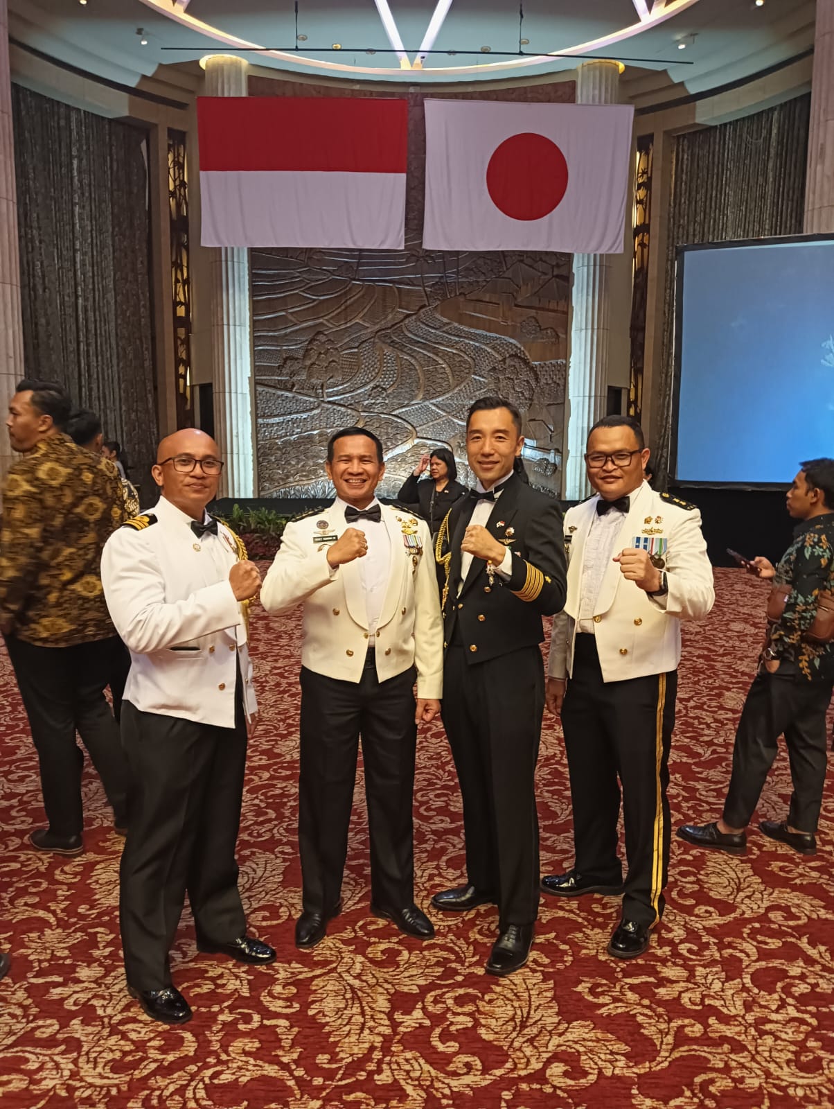 (Jakarta), Staf Ahli A bidang Operasi Panglima Korps Marinir (Sahli A Pangkormar) Kolonel Marinir Didiet Hendra Wijaya, M.Mp., mewakili Panglima Korps Marinir (Pangkormar) Letnan Jenderal TNI (Mar) Dr. Endi Supardi, S.E., M.M., M.Tr.Opsla., CHRMP., CRMP., bersama Staf Ahli C bidang Manajemen (Sahli C Pangkormar) Kolonel Marinir Jumino yang mewakili Kepala Staf Korps Marinir (Kas Kormar), menghadiri resepsi peringatan Japan Self Defence Force (JSDF) Day ke-71 di Ballroom Hotel Indonesia Kempinski, Jakarta, Selasa (4/11/2025).