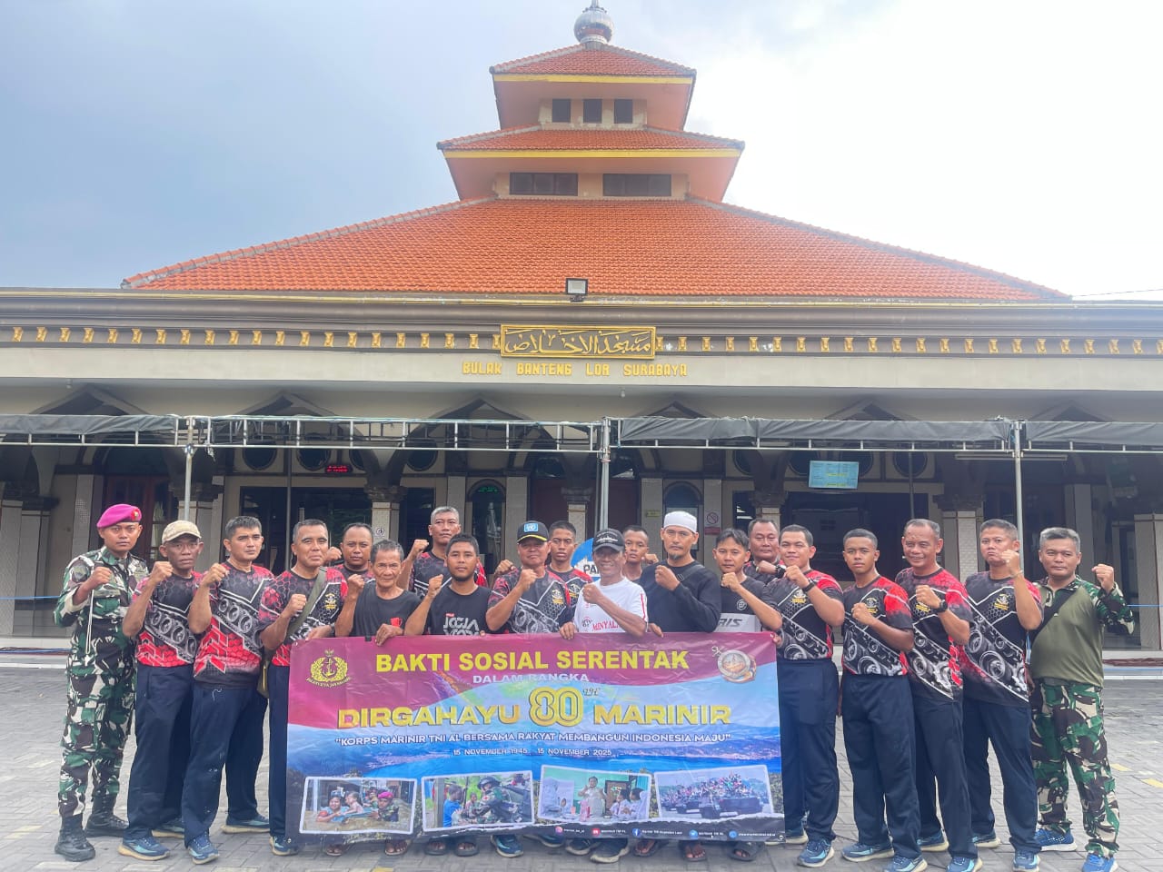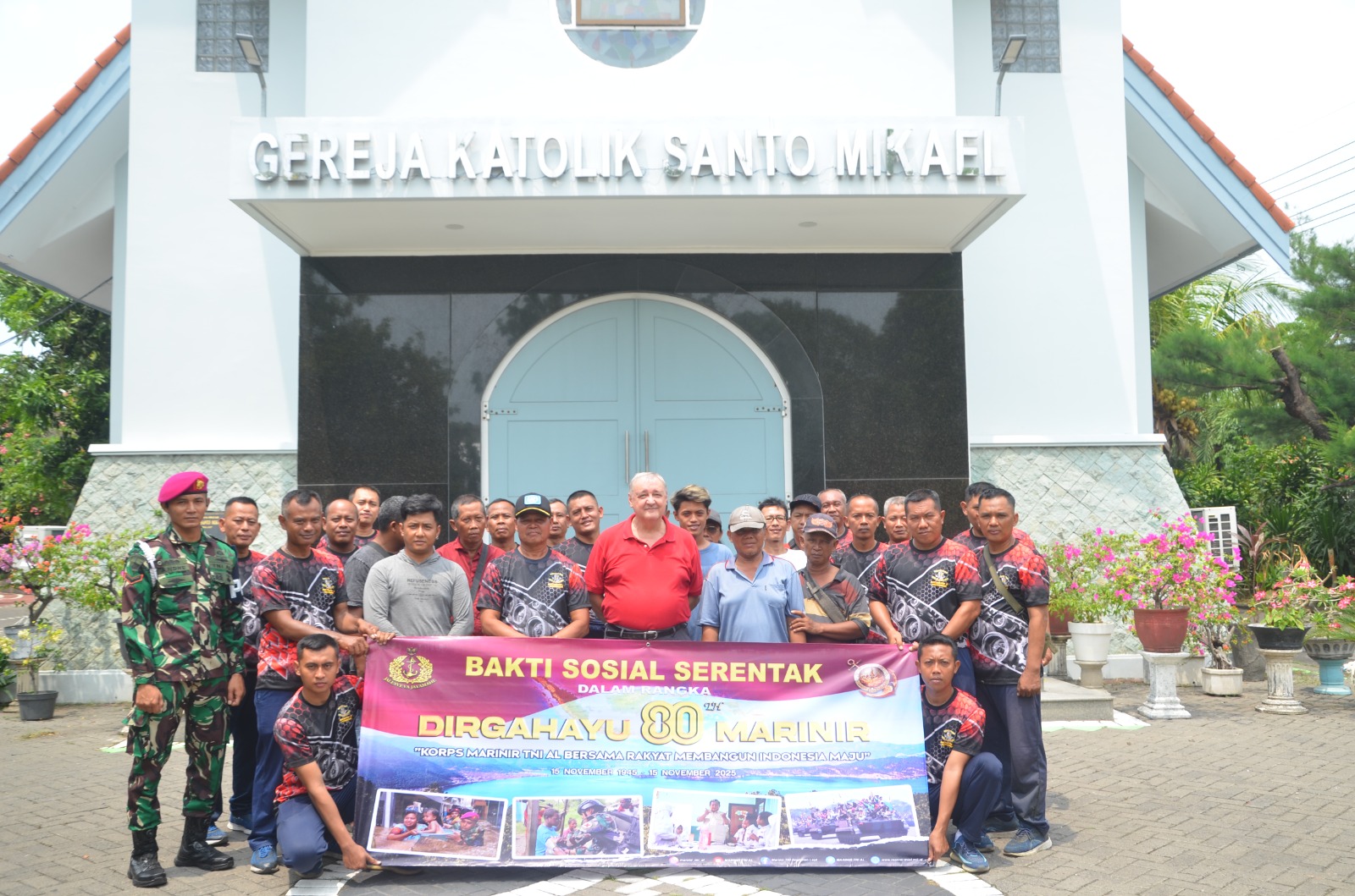 (Surabaya). Resimen Kavaleri 2 Marinir menggelar bakti sosial serentak dengan melakukan pembersihan diberbagai tempat ibadah meliputi, pengecetan dan pembersihan lingkungan, menyambut HUT Korps Marinir yang ke 80 Tahun 2025, sebagai bentuk menjalin hubungan antar umat beragama serta memperkuat semangat kebersamaan dan toleransi antar agama yang dilaksanakan di Gereja Santo Mikael dan Masjid Al Ikhlas Surabaya. Rabu (05/11/2025).