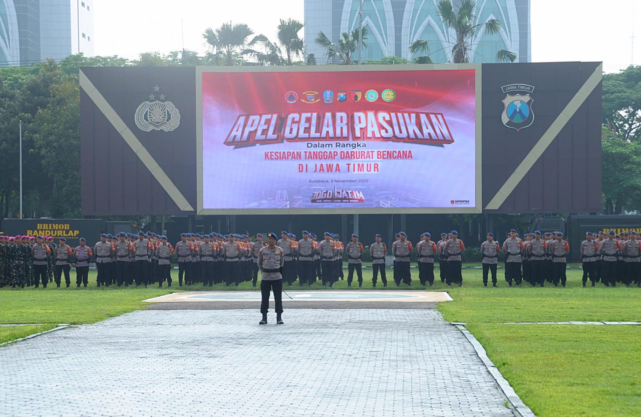 Apel gelar pasukan ini dihadiri Gubernur Jawa Timur Drs. Hj. Khofifah Indar Parawansa, M.Si., dipimpin Kapolda Jawa Timur Irjen Pol. Nanang Avianto, M.Si., membacakan amanat Kapolri menyampaikan bahwa tantangan global dalam menghadapi berbagai potensi bencana alam semakin meningkat setiap tahunnya.