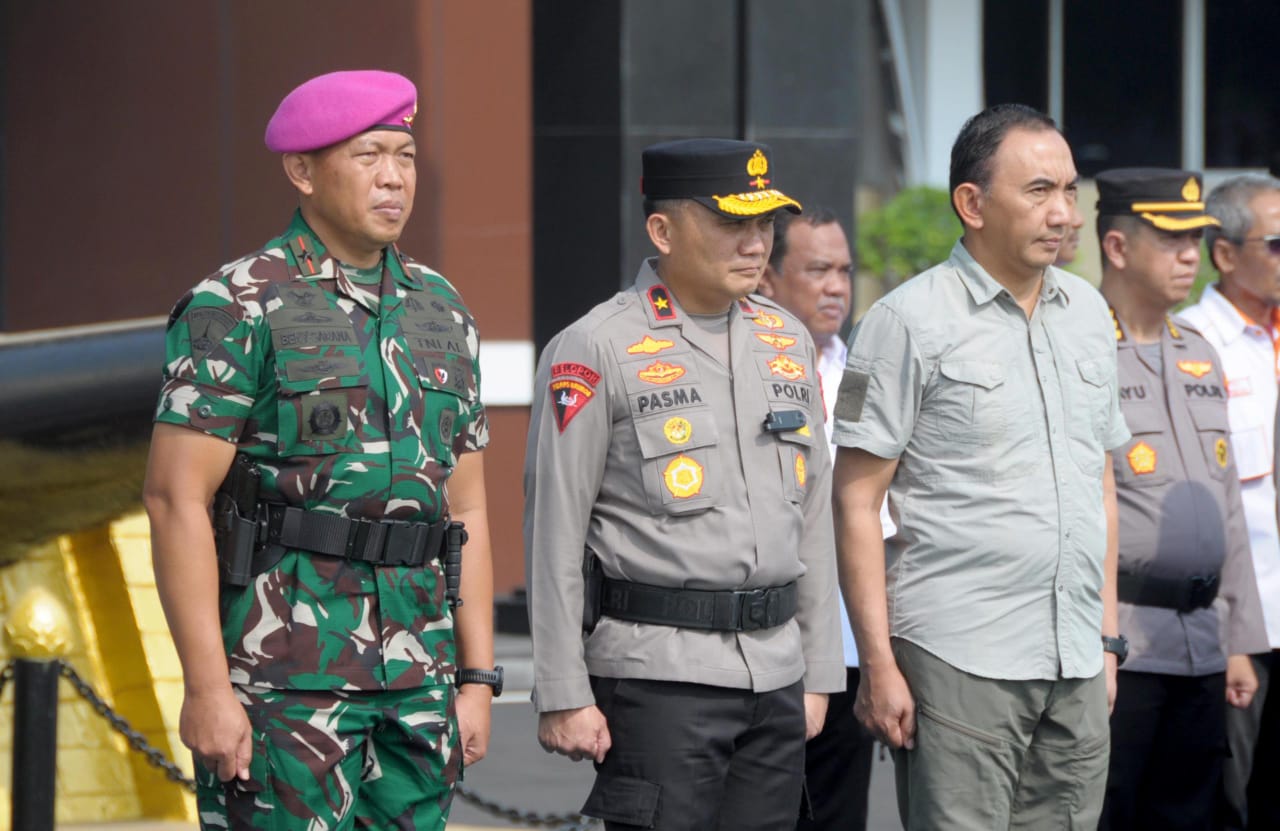 Dispen Kormar TNI AL (Surabaya) PW : Wakil Komandan Pasmar 2 Brigjen TNI (Mar) Arinto Beny Sarana, S.E., M.M., menghadiri Apel Gelar Pasukan Kesiapan Tanggap Darurat Bencana Hidrometeorologi tahun 2025 yang digelar di lapangan Mapolda Jawa Timur, Jl. Ahmad Yani No.116, Gayungan, Surabaya, Rabu (05/11/2025).