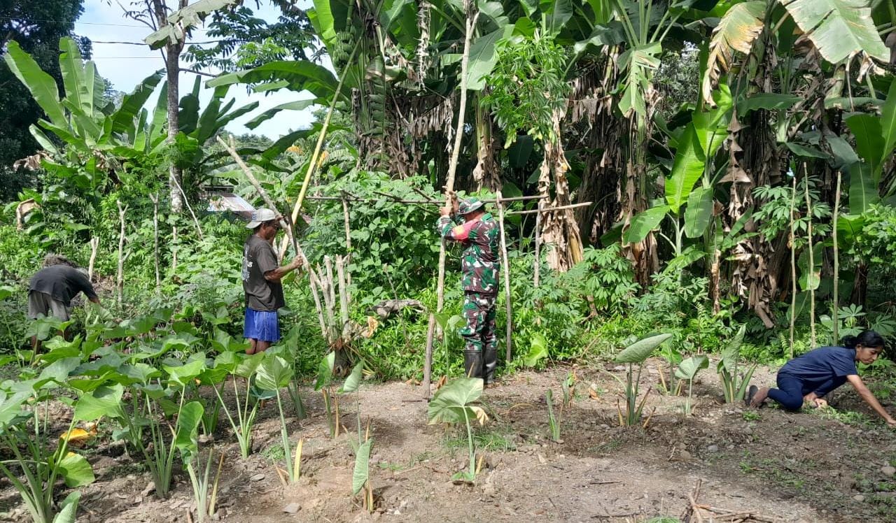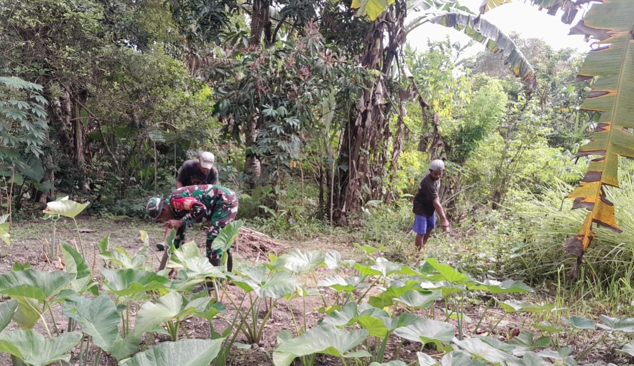 BABINSA TANIWEL LAKSANAKAN KERJA BAKTI BERSIHKAN LAHAN KEBUN WARGA