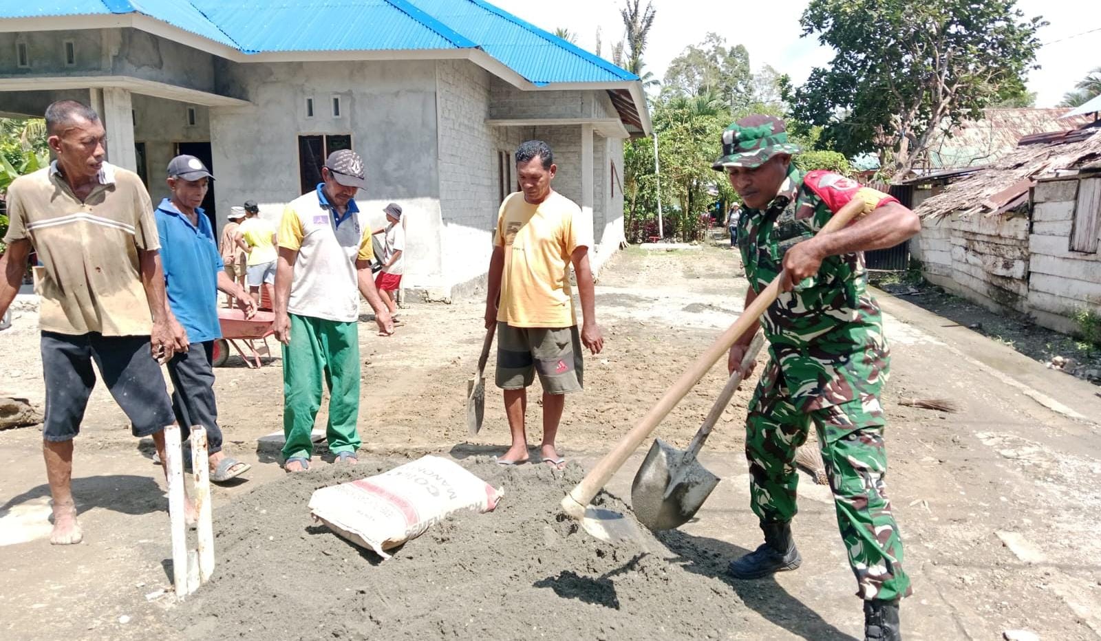 Babinsa Musihuwey Bersama Warga Gotong Royong Bantu Plester Rumah Warga
