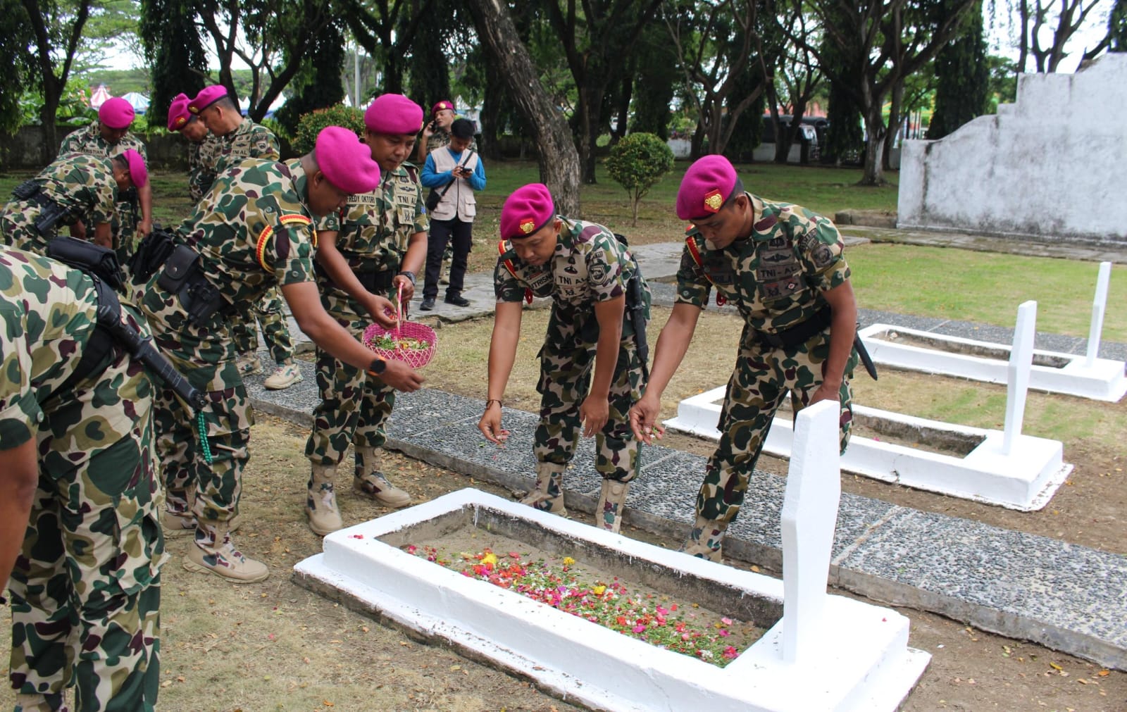 Peletakan karangan bunga dan tabur bunga di atas pusara makam oleh Danpuslatpurmar 8, ziarah Ini merupakan simbol penghargaan yang mendalam atas pengorbanan para pahlawan yang telah gugur demi bangsa dan negara dan menunjukkan komitmen prajurit Puslatpurmar 8 Teluk Ratai untuk terus menghormati serta mengenang jasa-jasa para pahlawan.