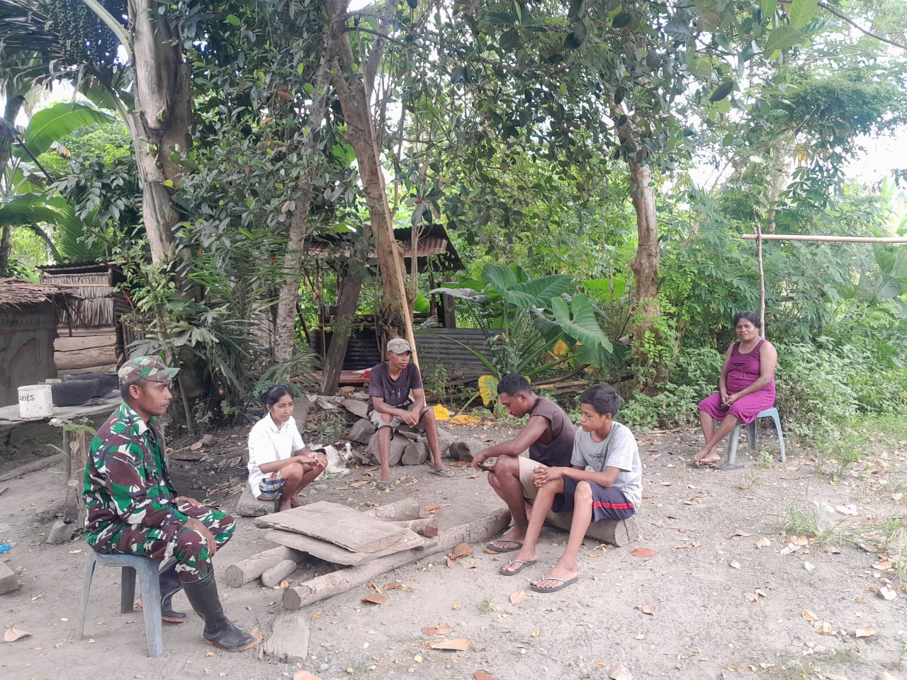 SBB PW Minggu, 09 November 2025 pukul 11.30 WIT, Babinsa Desa Lumapelu, Kecamatan Taniwel Timur, Kabupaten Seram Bagian Barat, Serda Oskar Taniwel melaksanakan kegiatan Komunikasi Sosial (Komsos) bersama dengan beberapa masyarakat di Desa Lumapelu.