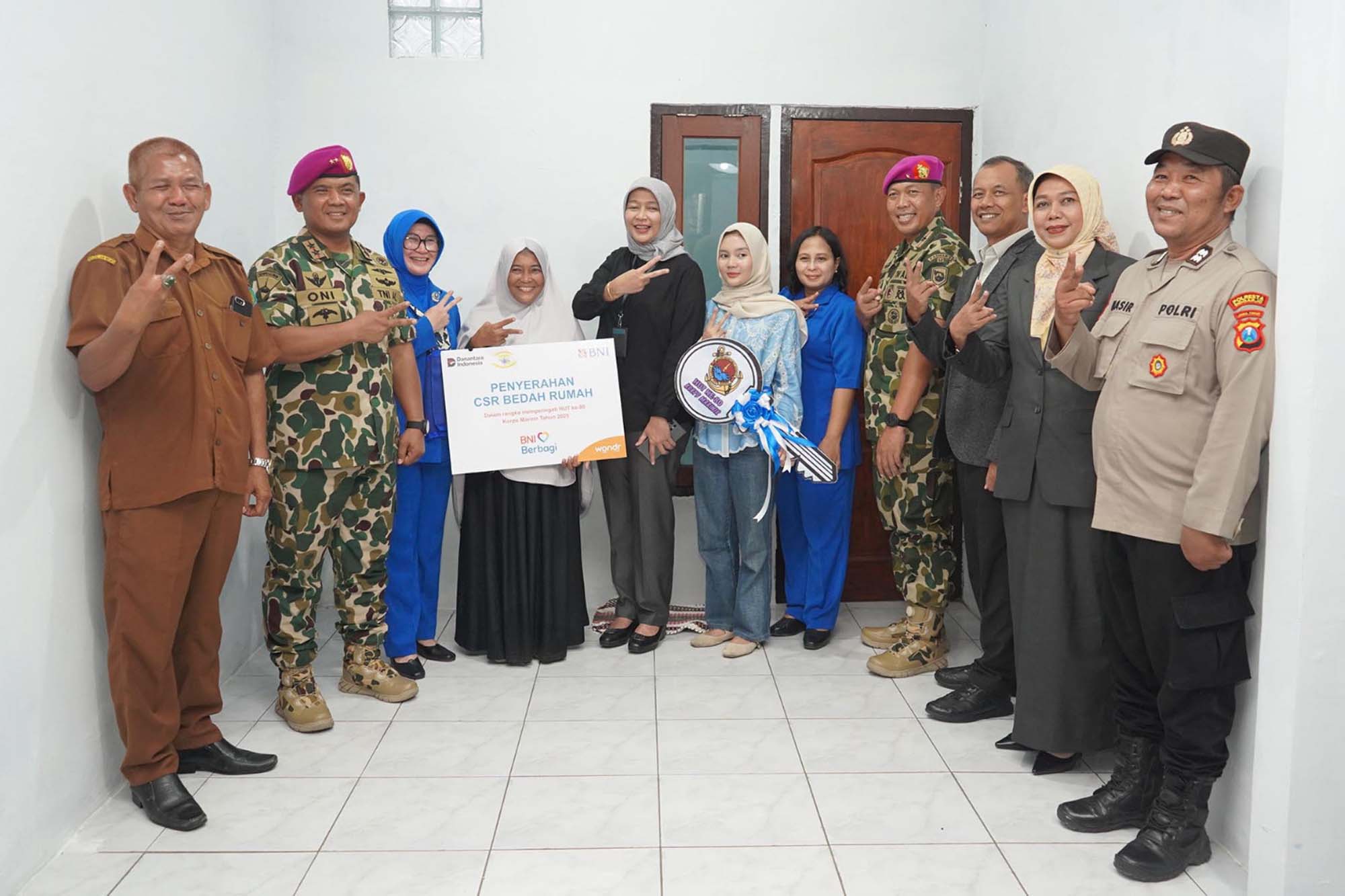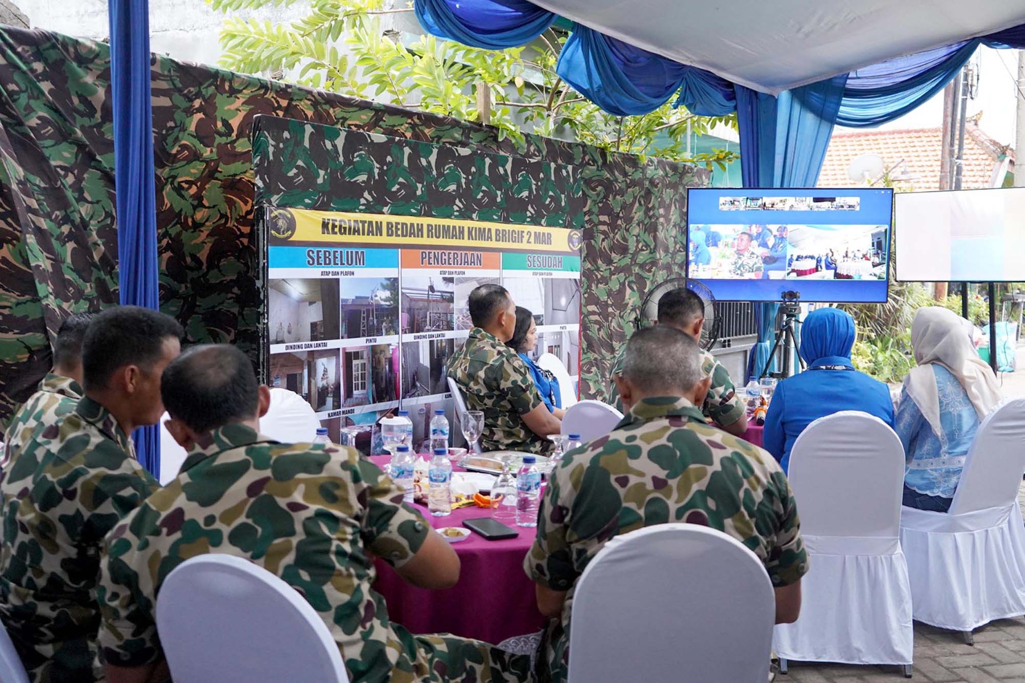 TNI AL, Dispen Kormar (Sidoarjo) PW : Komandan Brigif 2 Marinir Kolonel Marinir Daniel Tarigan menghadiri Vicon peresmian bedah rumah serentak dalam rangka memperingati Hari Ulang Tahun (HUT Ke 80 Korps Marinir tahun 2025 di Perum Mentari Bumi Sejahtera Jl. Melati 5 Blok AS No. 31 Candi, Sidoarjo, Jawa Timur. Senin (10/11/2025).
