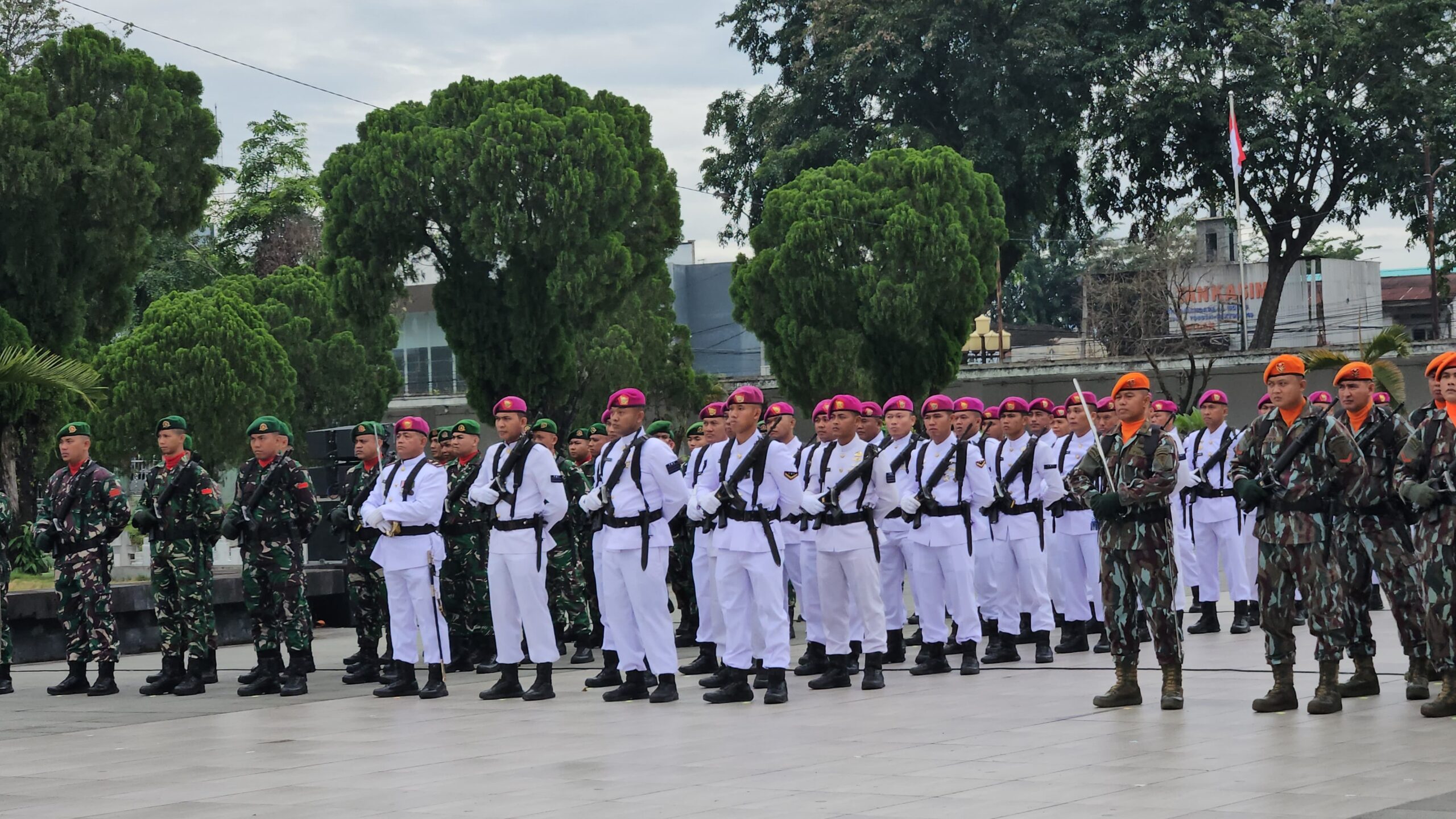 TNI AL, Pasmar 1. Dalam rangka peringatan Hari Pahlawan Nasional tingkat Provinsi Sumatera Utara 10 November Tahun 2025, Prajurit Batalyon Marinir Pertahanan Pangkalan (Yonmarhanlan) l Belawan mengikuti Upacara Ziarah Nasional di Taman Makam Pahlawan (TMP) Bukit Barisan, Jl. SM Raja, Kota Medan, Sumatera Utara. Senin (10/11/2025).