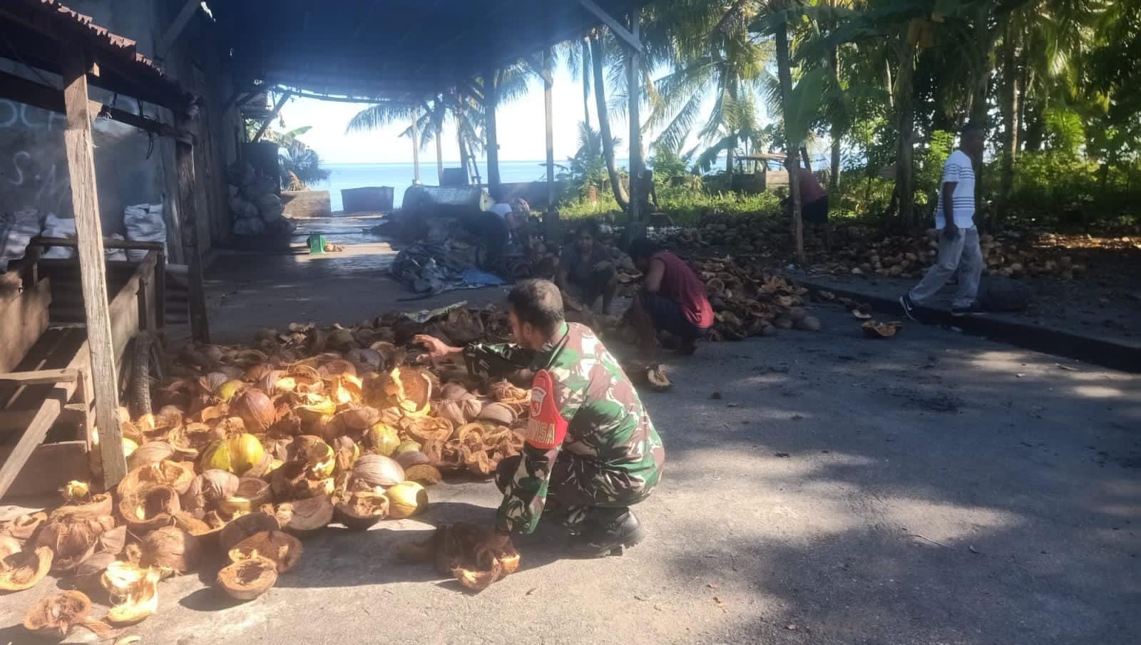 Kegiatan ini dilakukan sebagai bentuk kepedulian Babinsa terhadap kondisi lingkungan sekitar yang mulai dipenuhi tumpukan kulit kelapa sisa pengolahan kopra.
