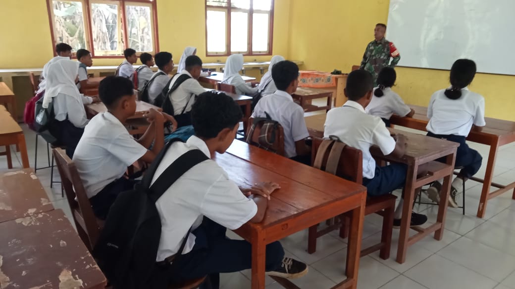 Serda Gino melaksanakan kegiatan Wawasan Kebangsaan (Wanwil) dengan memberikan materi pengetahuan tentang Pancasila kepada para siswa di SMP Negeri 4 Kepulauan Manipa.