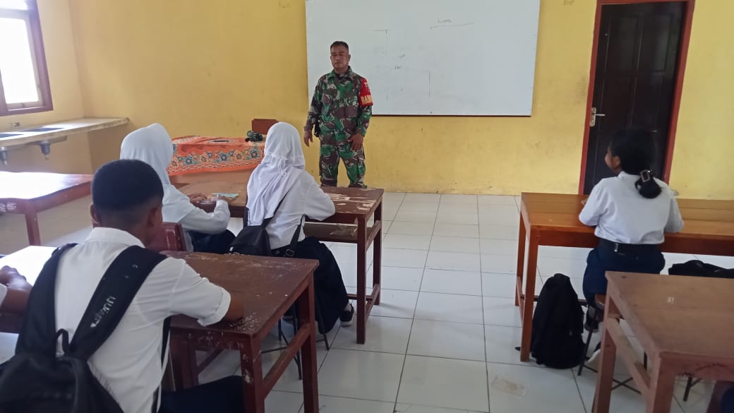 “Sebagai pelajar, adik-adik harus bangga menjadi warga negara Indonesia dan menjadikan Pancasila sebagai pegangan moral dalam berperilaku,” ujar Serda Gino di hadapan para siswa.