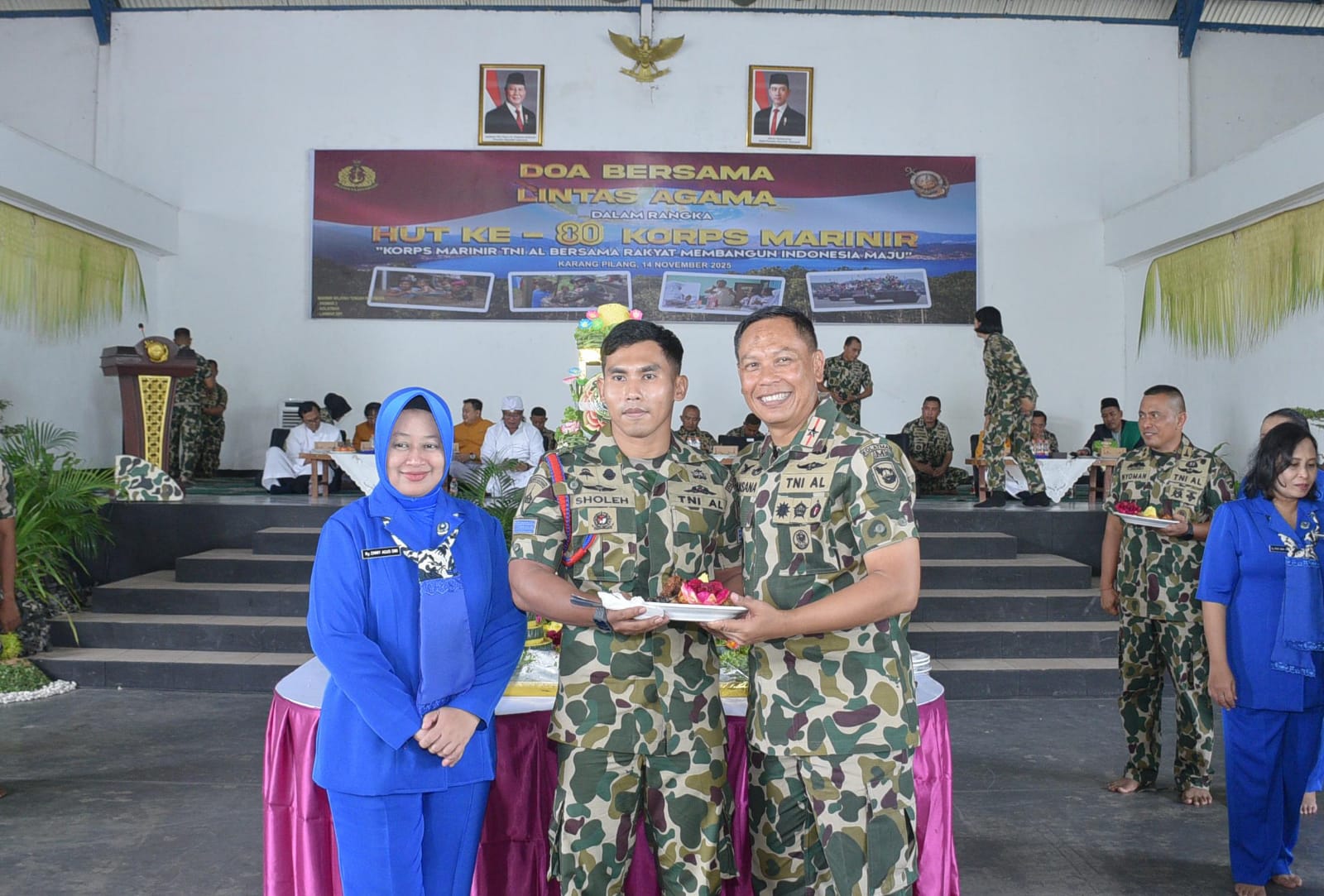 TNI AL, Dispen Kormar, Kolatmar (Surabaya) PW : Komandan Komando Latihan Marinir (Dankolatmar) Brigjen TNI (Mar) Agus Dwi Laksana Putra didampingi Ketua Cabang 5 Gabungan Jalasenastri Korps Marinir Ny. Emmy Agus Dwi Laksana beserta segenap Prajurit dan Jalasenastri mengikuti Tasyakuran dan Doa lintas agama di Indoor Sport Kesatrian Sutedi Senaputra, Karangpilang, Surabaya. Jumat (14/11/2025). Kegiatan ini dilaksanakan dalam rangka Hari Ulang Tahun (HUT) ke-80 Korps Marinir dengan tujuan memohon kepada Tuhan YME agar diberikan keselamatan, perlindungan, kedamaian, keberkahan, dan kejayaan negara Indonesia khususnya bagi Korps Marinir TNI AL dalam menjaga…