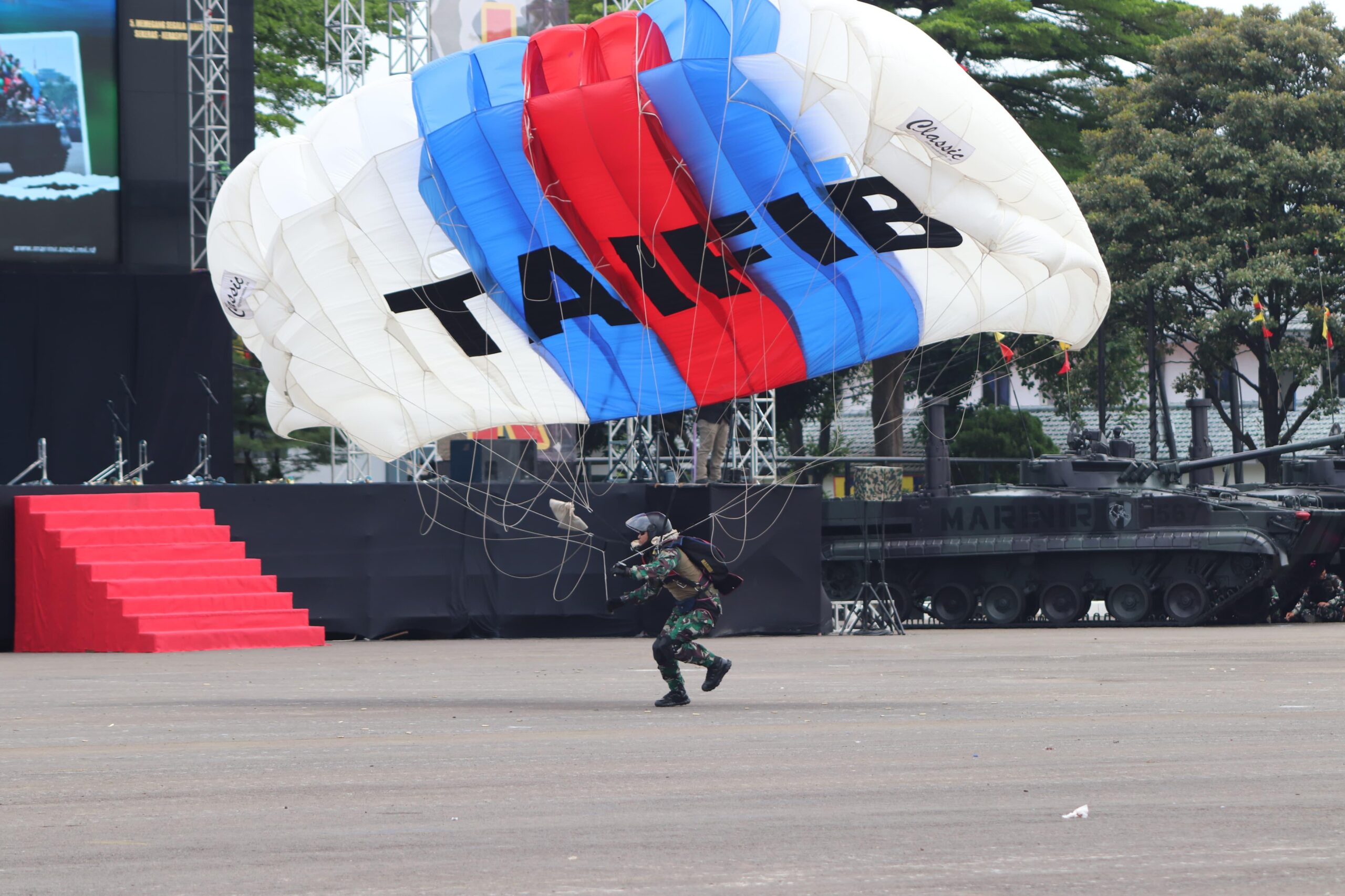 TNI AL, Dispen Kormar, Pasmar 1 (Jakarta). Dalam rangka kesiapan menyambut HUT Ke-80 Korps Marinir prajurit Detasemen Intai Para Amfibi 1 Marinir (Denipam 1 Mar) melaksanakan geladi Demo Aksi Khusus (Aksus) yang bertempat di Lapangan Brigif 1 Marinir, Cilandak, Jakarta Selatan, Jumat (14/11/2025).