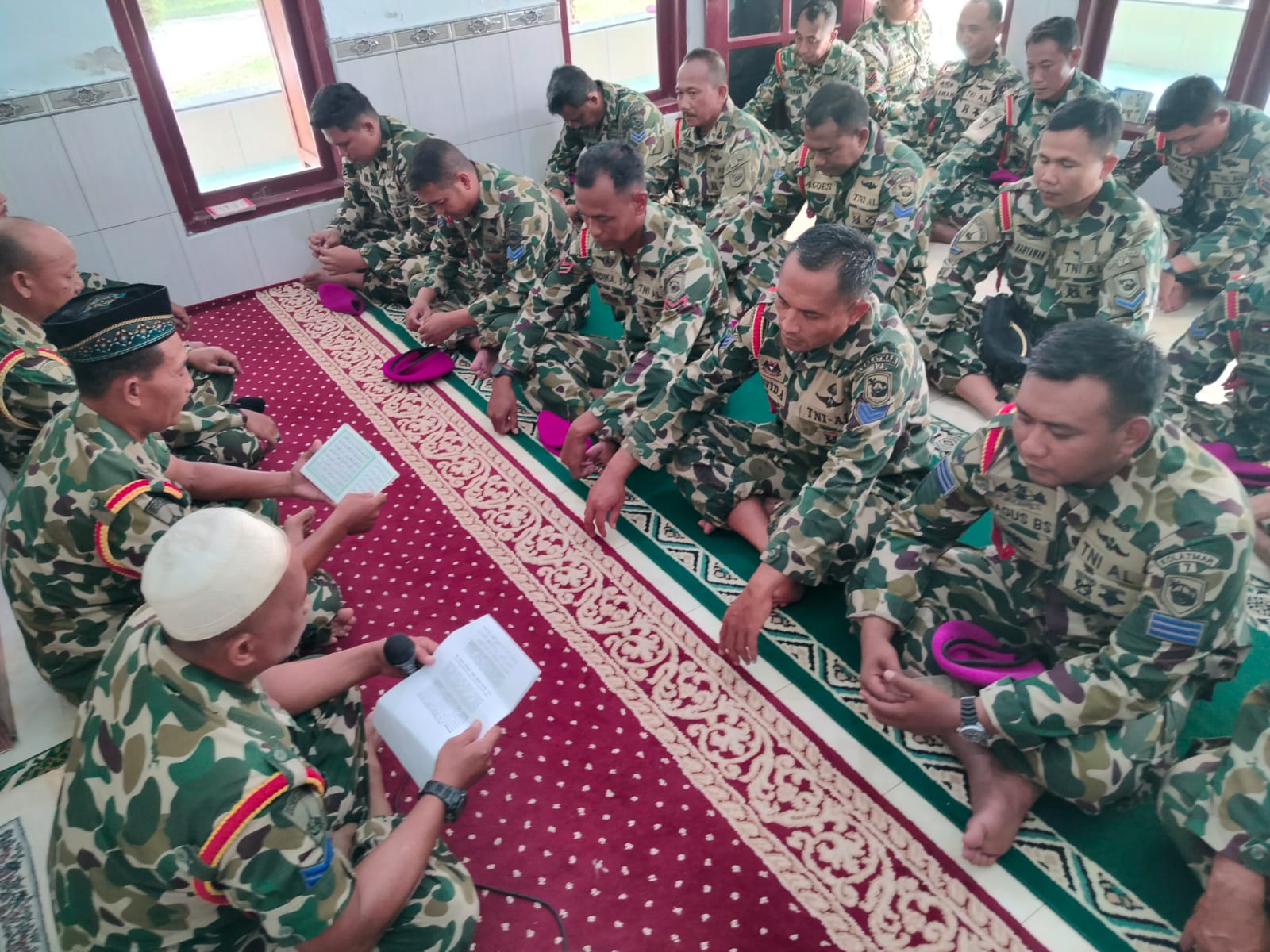 Dispen Kormar (Banyuwangi) PW : Dalam rangka menyambut HUT Korps Marinir Ke.80 Ta 2025, Pusat Latihan Pertempuran Marinir (Puslatpurmar)7 Lampon menyelenggarakan istighosah dan do’a bersama di Mushola Nurul Muhitd Puslatpurmar 7 Lampon. pada Jum’at (14/11/2025).
