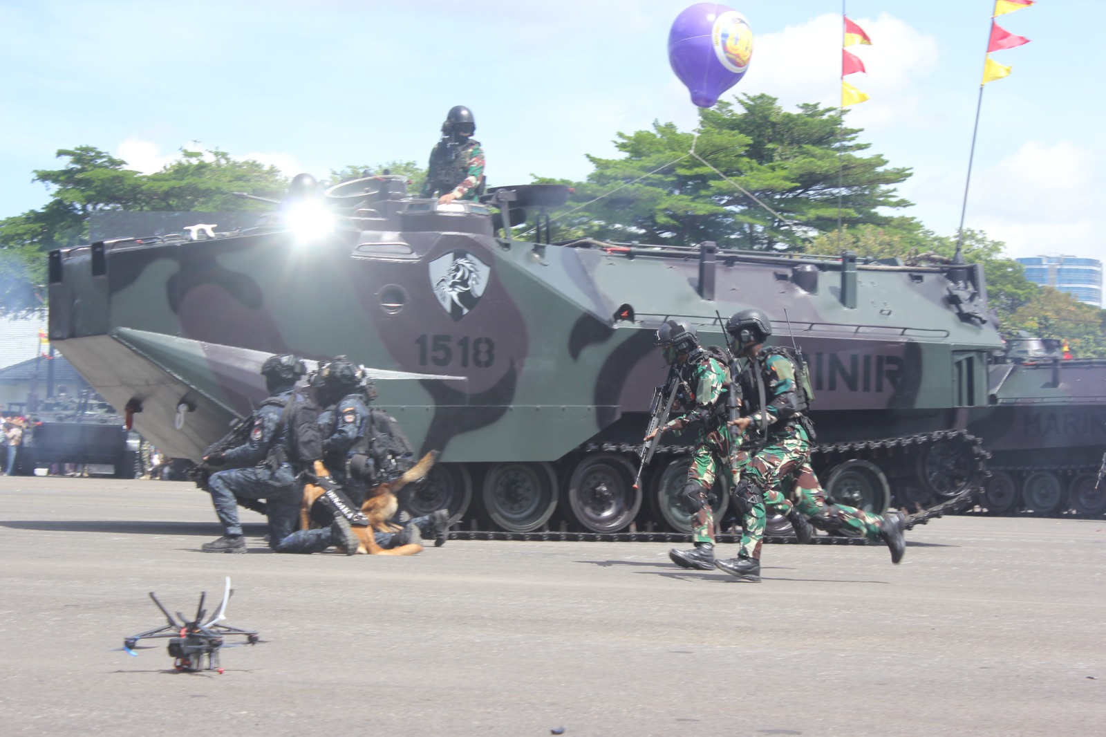 Sementara itu pada kesempatan tersebut Danbrigif 1 Marinir Kolonel Marinir Alim Firdaus, S.H., M.Tr.Hanla., M.M., menyampaikan agar melaksanakan demonstrasi Kerja Sama Infanteri Tank (KSIT) dengan semangat. “Berikan penampilan terbaik di hadapan ribuan masyarakat Indonesia, tunjukkan bahwa kalian prajurit Korps Marinir yang handal dan profesional,” ujarnya.