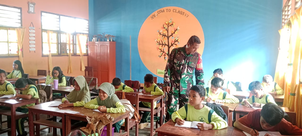Suasana kelas semakin hidup ketika Sertu Safiudin memberikan contoh nyata sikap yang mencerminkan nilai-nilai Pancasila dalam kehidupan sehari-hari di lingkungan sekolah maupun di rumah.