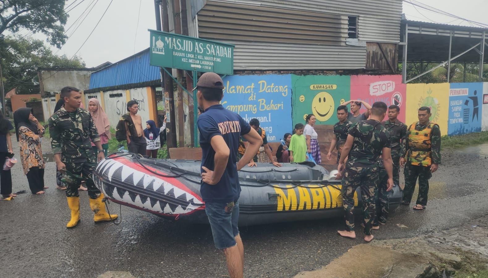 Yonmarhanlan I Belawan yang berada di bawah kendali operasi Kodaeral I, bergerak cepat, membantu mengevakuasi warga yang masih terjebak banjir.