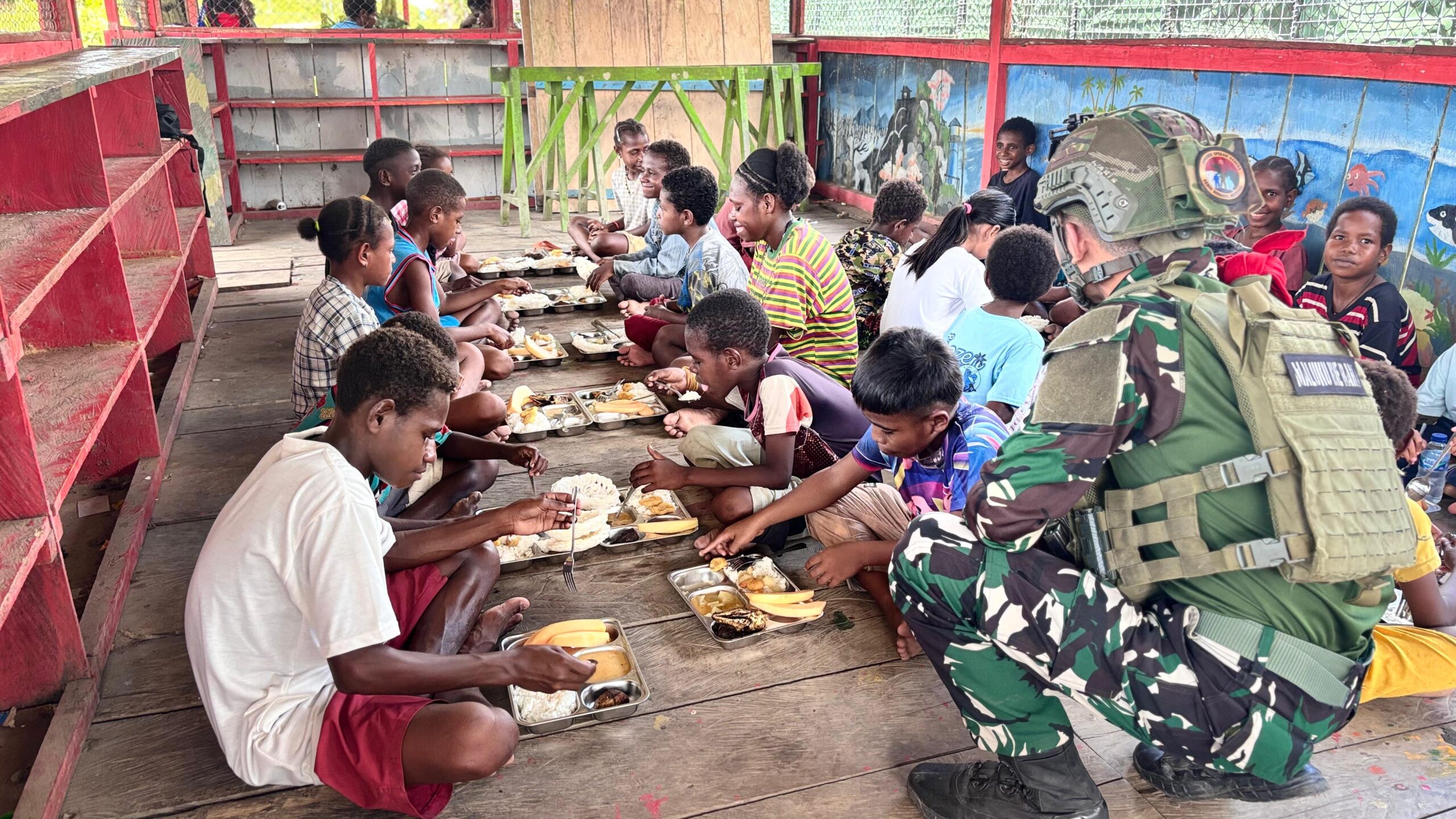“Banyak anak di sini yang datang ke sekolah dengan kondisi kurang makan. Kehadiran program ini sangat membantu, sekaligus meningkatkan konsentrasi mereka saat belajar. Kami berterima kasih atas dukungan Satgas terhadap sekolah kami,” kata Ibu Sinta.