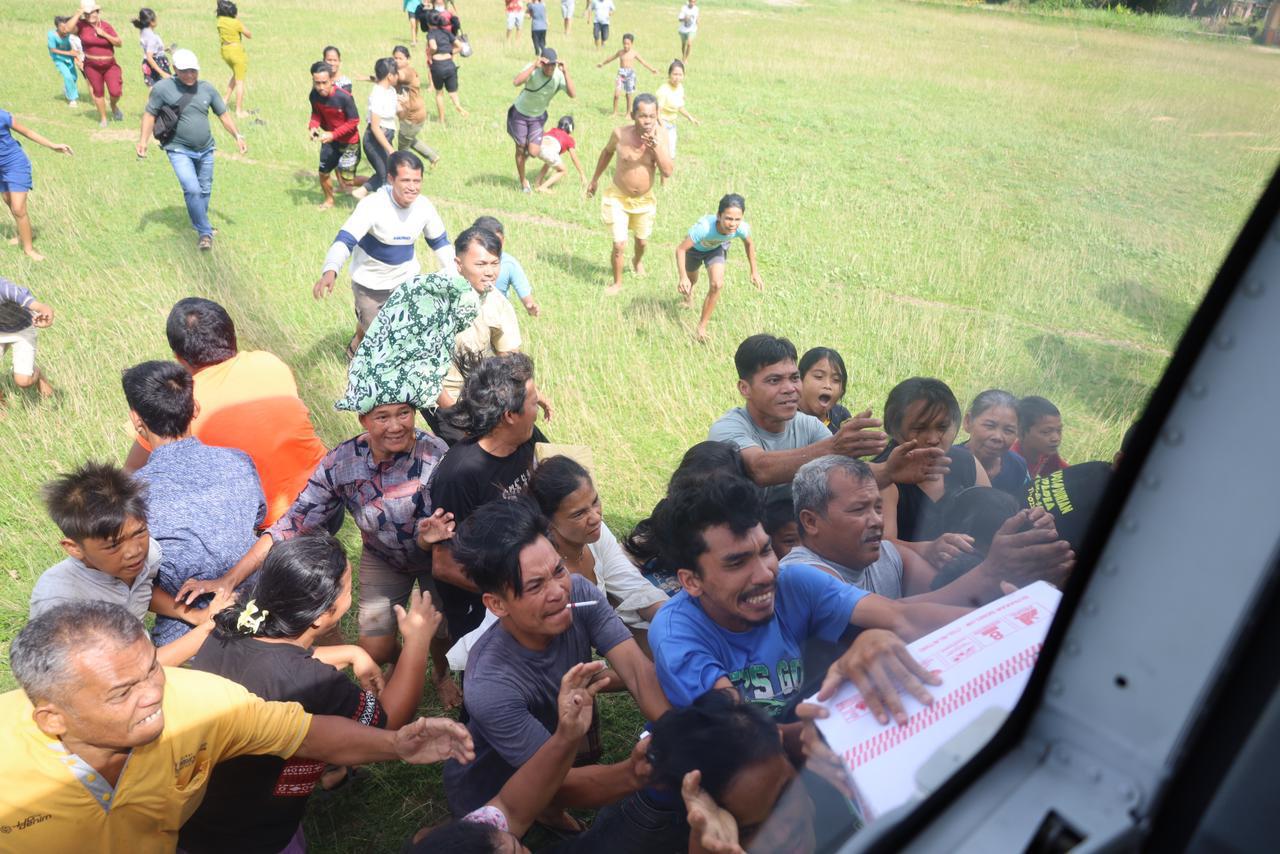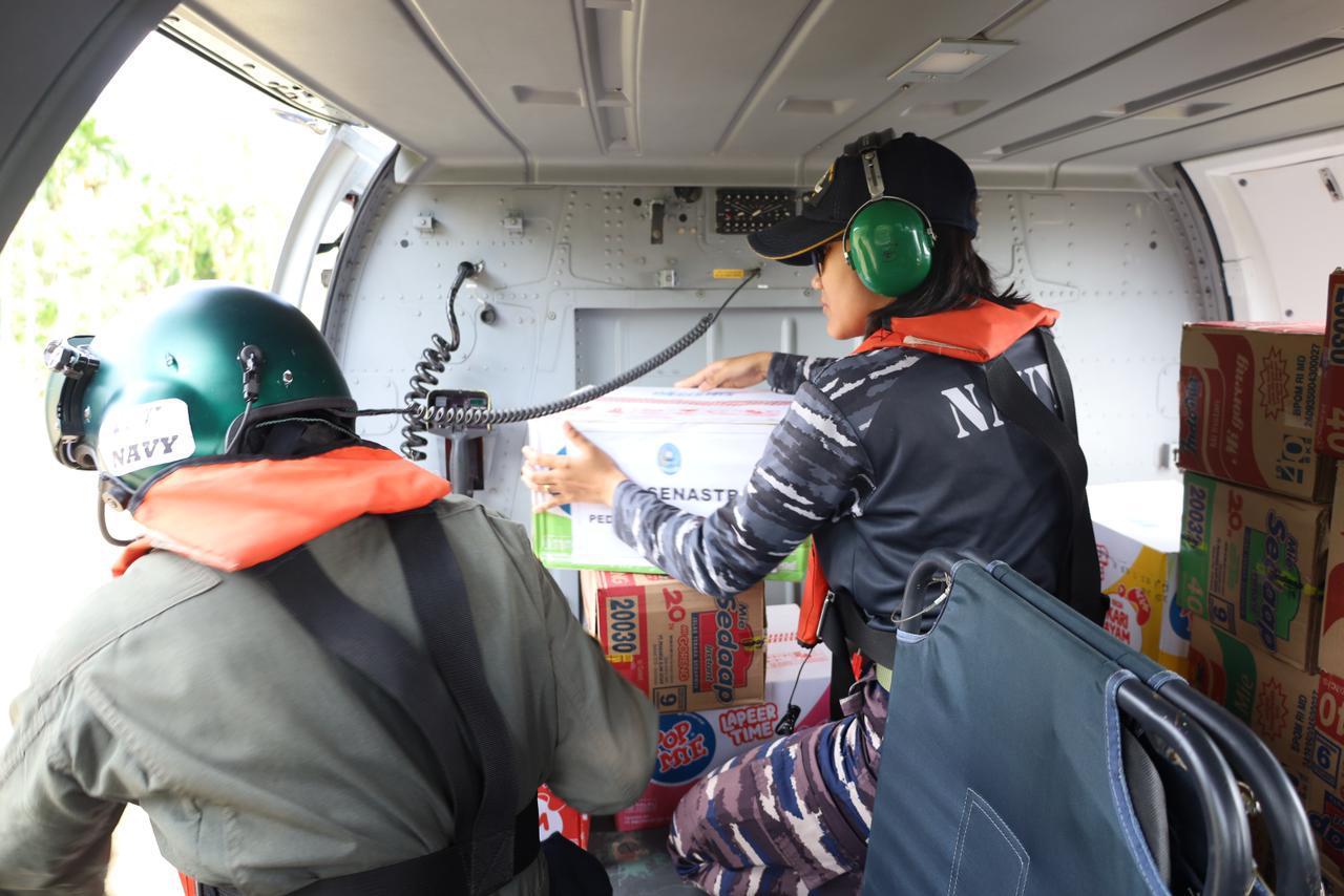 Heli Panther yang onboard di KRI dr. Radjiman Wedyodiningrat (RJW)-992 membawa 150 Kg bantuan di masing-masing wilayah berupa bahan makanan, selimut, dan pakaian.