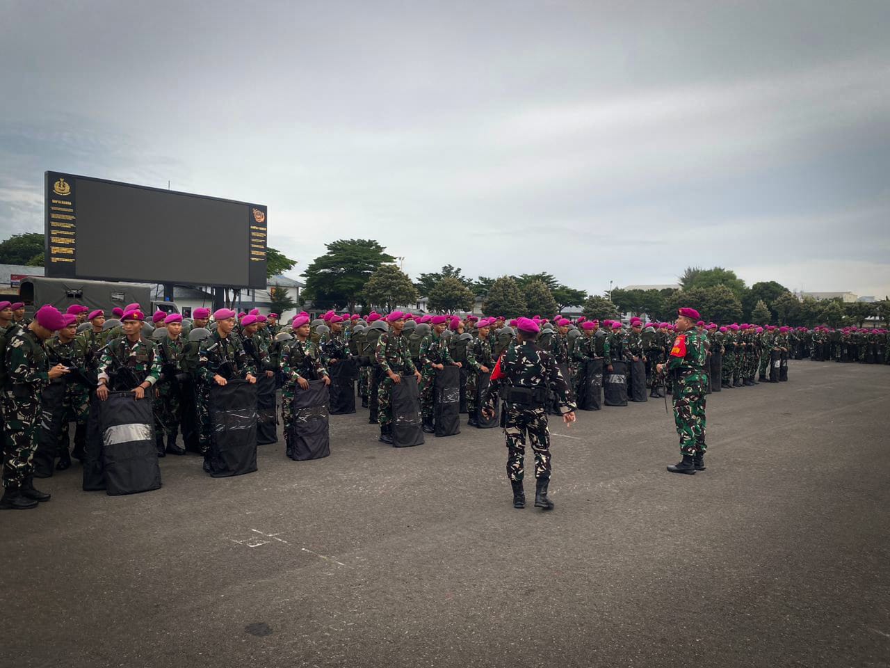 Sebelum keberangkatan para prajurit mendapatkan arahan serta pengecekan kesiapan personel dan material. Mulai dari helm, rompi, hingga perlengkapan anti huru hara turut disiapkan untuk mendukung kelancaran tugas.