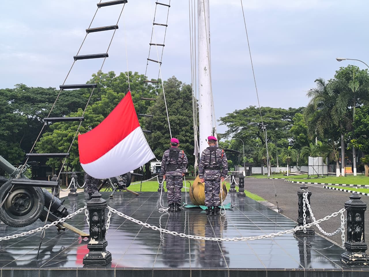 TNI AL. Dispen Kormar (Pasuruan) PW : Pusat Latihan Pertempuran Marinir (Puslatpurmar) 3 Grati melaksanakan Upacara Peringatan Hari Bela Negara ke-77 Tahun 2025 bertempat di Lapangan Mako Kolatmar, kegiatan ini menjadi wujud nyata komitmen Puslatpurmar 3 Grati dalam meneguhkan semangat bela negara guna mendukung terwujudnya Indonesia yang maju, berdaulat, dan tangguh. Jumat (19/12/2025)
