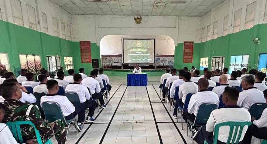 Dispen Kormar (Surabaya) PW : Dalam rangka menghadapi libur bersama Natal Tahun 2025 dan menyambut Tahun Baru 2026, Komandan Pusat Latihan Pasukan Pendarat (Danpuslatpasrat) Letkol Mar Nurdin,M.Tr.Opsla., berikan Jam Komandan kepada seluruh prajuritnya, bertempat di ruang Maket Embarkasi Debarkasi Kesatrian Marinir Ewa Pangalila, Gunungsari Surabaya, Selasa (23/12/2025).