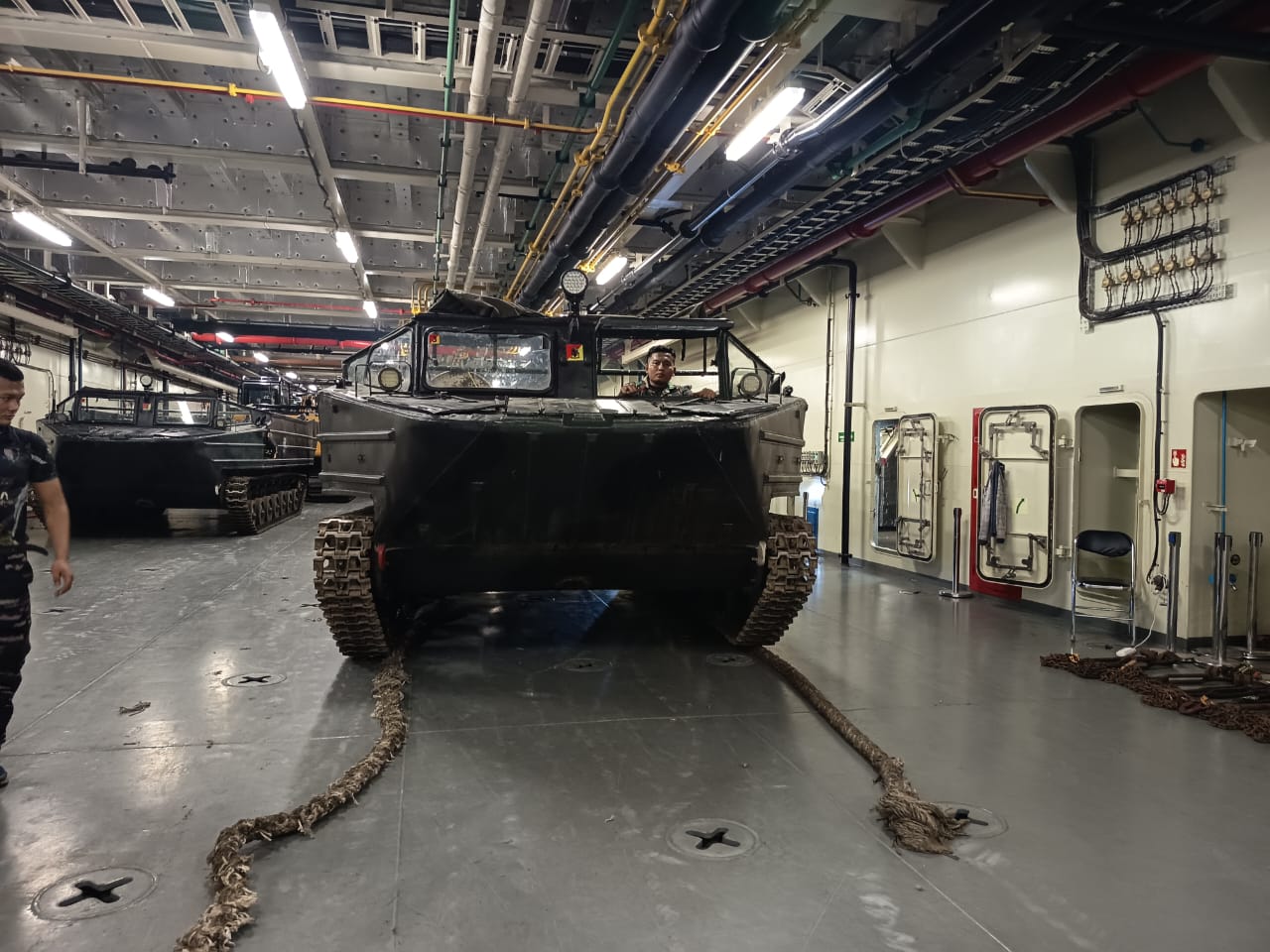 Sebelum pelaksanaan embarkasi, dilakukan pengecekan menyeluruh terhadap kesiapan ranpur, personel, serta perlengkapan pendukung guna memastikan seluruh unsur dalam kondisi siap operasi. Ranpur Kapa K-61 dimuat ke atas KRI dr. Radjiman Wedyodiningrat-992 secara aman dan tertib sesuai prosedur yang berlaku.