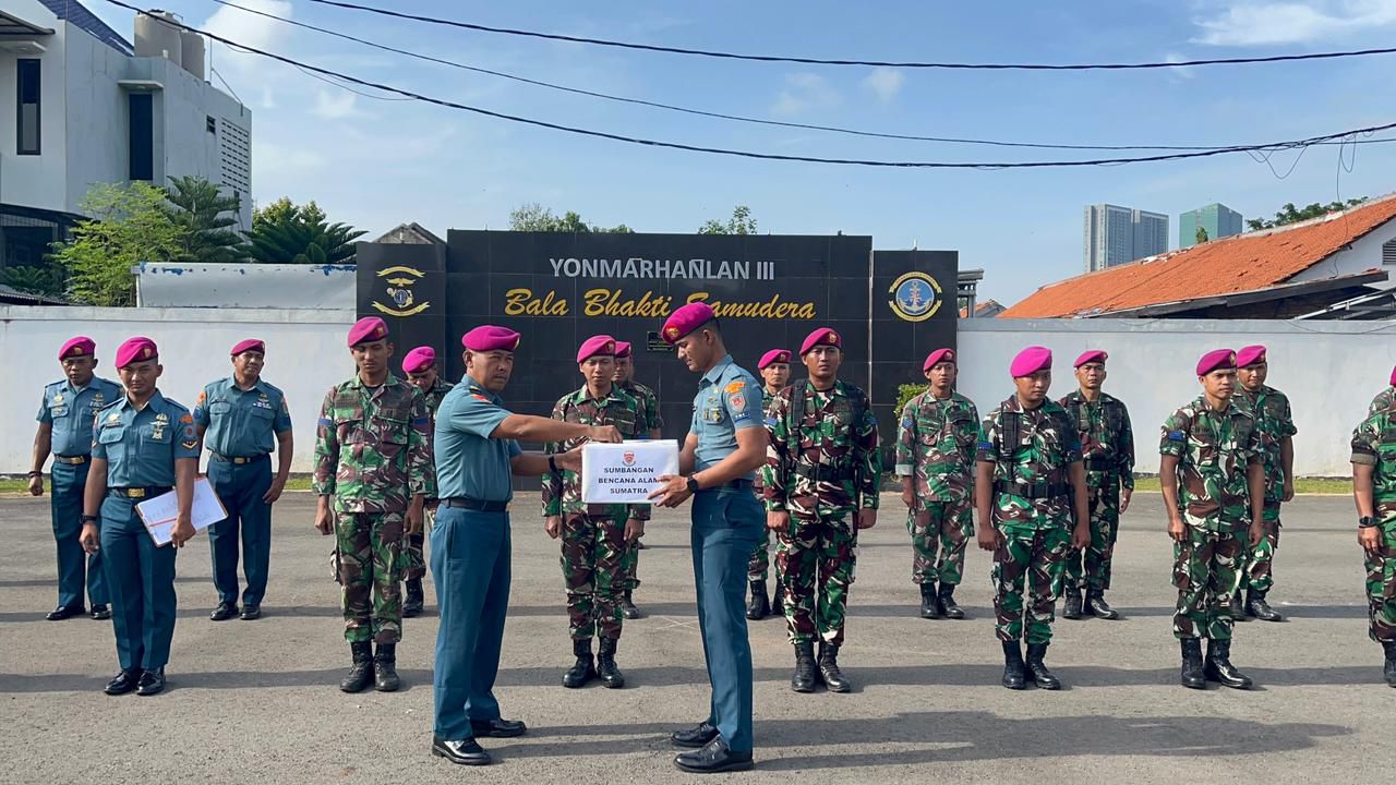 TNI AL, Pasmar 1. Sebagai wujud kepedulian dan solidaritas antar sesama prajurit, Batalyon Marinir Pertahanan Pangkalan (Yonmarhanlan) III Jakarta melaksanakan kegiatan penggalangan dana untuk membantu korban bencana alam Sumatera. Kegiatan tersebut dilaksanakan bersama seluruh prajurit Yonmarhanlan III “Hiu Perkasa”, dengan penuh rasa kebersamaan dan semangat kekeluargaan. Bertempat di Mako Yonmarhanlan III, Kelapa Gading, Jakarta Utara, Rabu (24/12/2025).