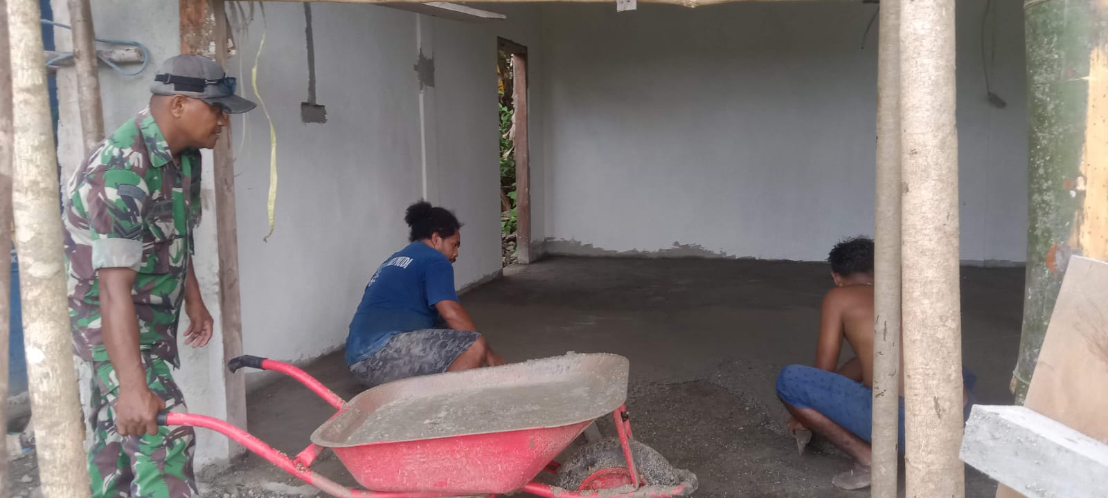 SBB PW Kamis, 25 Desember 2025, Babinsa Koramil 1513-01/Piru, Sertu La Ode Sariman, melaksanakan kegiatan bakti teritorial dengan membantu warga binaan melanjutkan pekerjaan pembangunan rumah di Dusun Hanunu, Desa Waesala, Kecamatan Huamual Belakang, Kabupaten Seram Bagian Barat. Kegiatan tersebut dilakukan di rumah milik Bapak La Hami, salah satu warga binaan Babinsa. Pada kesempatan itu, Sertu La Ode Sariman bersama pemilik rumah melaksanakan pekerjaan memplur serta mengecor lantai rumah sebagai bagian dari tahap lanjutan pembangunan. Kehadiran Babinsa di tengah-tengah masyarakat disambut dengan antusias dan rasa syukur oleh keluarga pemilik rumah.…