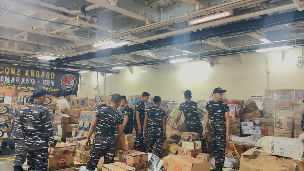 KRI Semarang-594 dengan Komandan KRI Letkol Laut (P) Agus Yunianto, membawa berbagai bantuan logistik dan material dari kementerian, lembaga, BUMN, komunitas, serta unsur TNI sebagai wujud sinergi dan kepedulian terhadap masyarakat terdampak bencana.