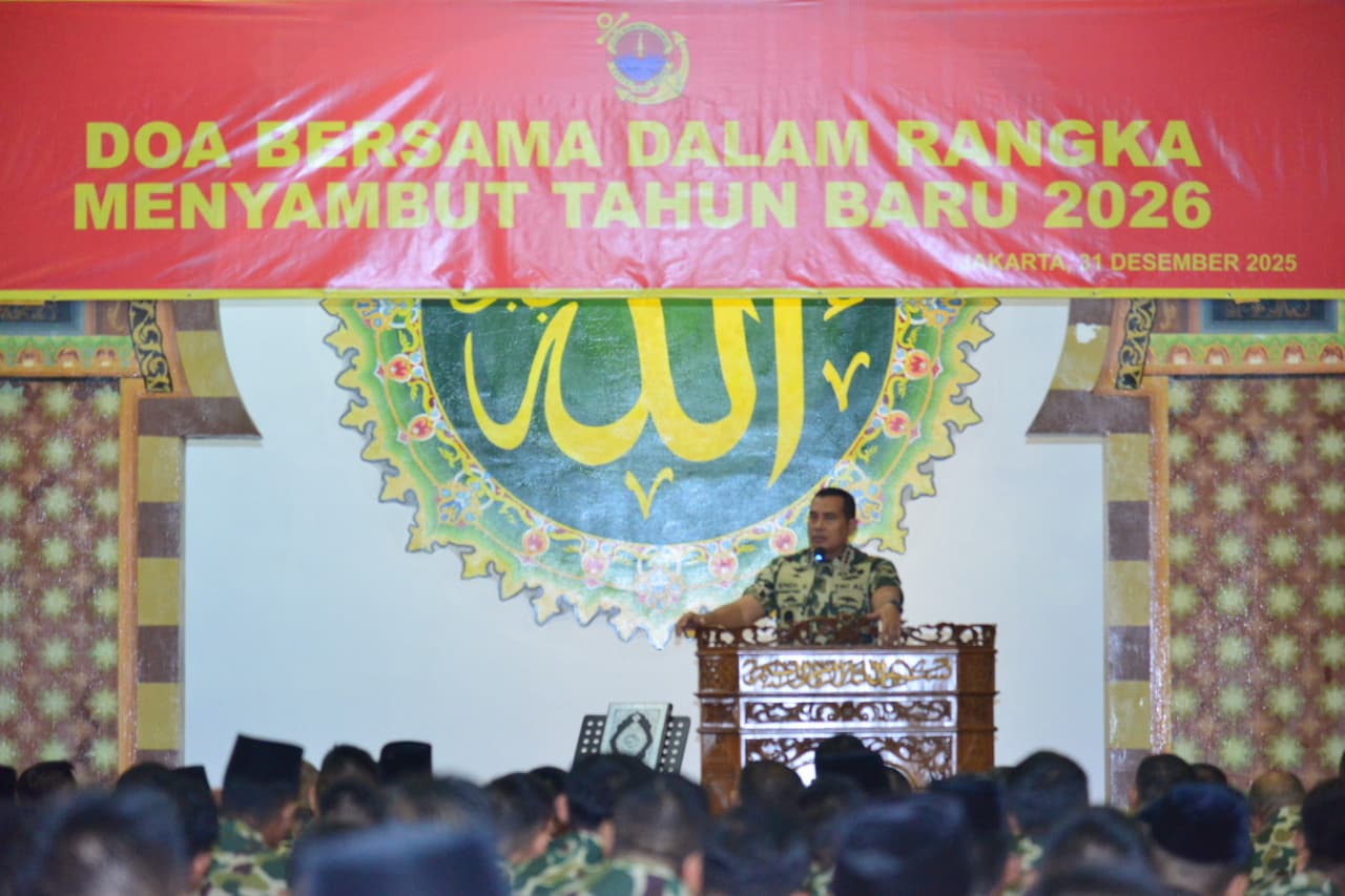 Dispen Kormar TNI Angkatan Laut (Jakarta) PW : Panglima Korps Marinir (Pangkormar) Letnan Jenderal TNI (Mar) Dr. Endi Supardi, S.E., M.M., M.Tr.Opsla., CHRMP., CRMP., memimpin doa bersama dalam rangka menyambut tahun baru di Masjid Al-Ikhlas, Cilandak, Jakarta Selatan, Rabu (31/12/2025).