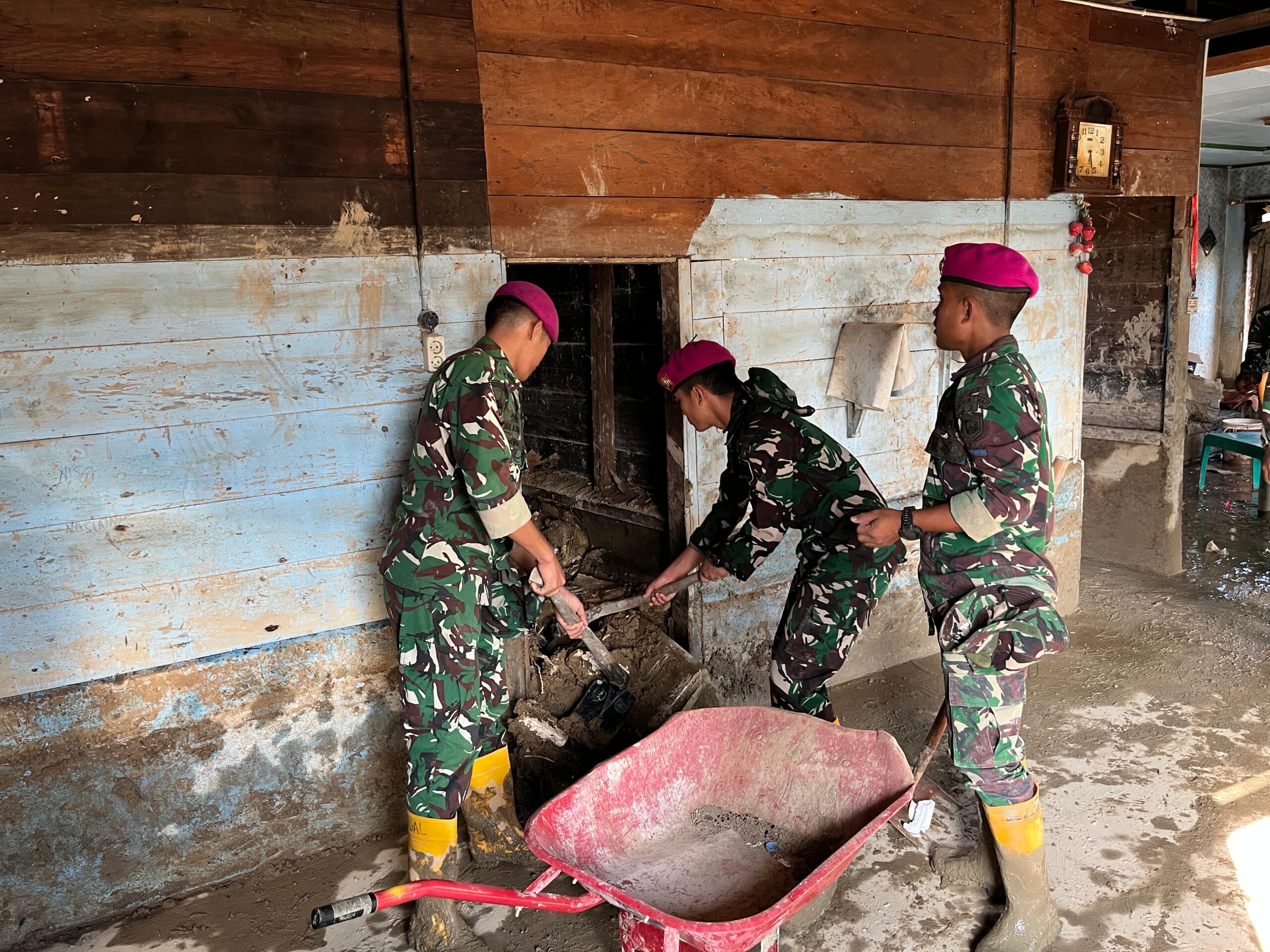 Banjir bandang yang dipicu oleh curah hujan tinggi menyebabkan material lumpur, pasir, batu, serta batang kayu menutup badan jalan dan menghambat aktivitas masyarakat. Menyikapi kondisi tersebut, prajurit Menart 1 Mar dengan sigap turun ke lokasi untuk membantu proses pembersihan bersama unsur terkait dan masyarakat setempat.