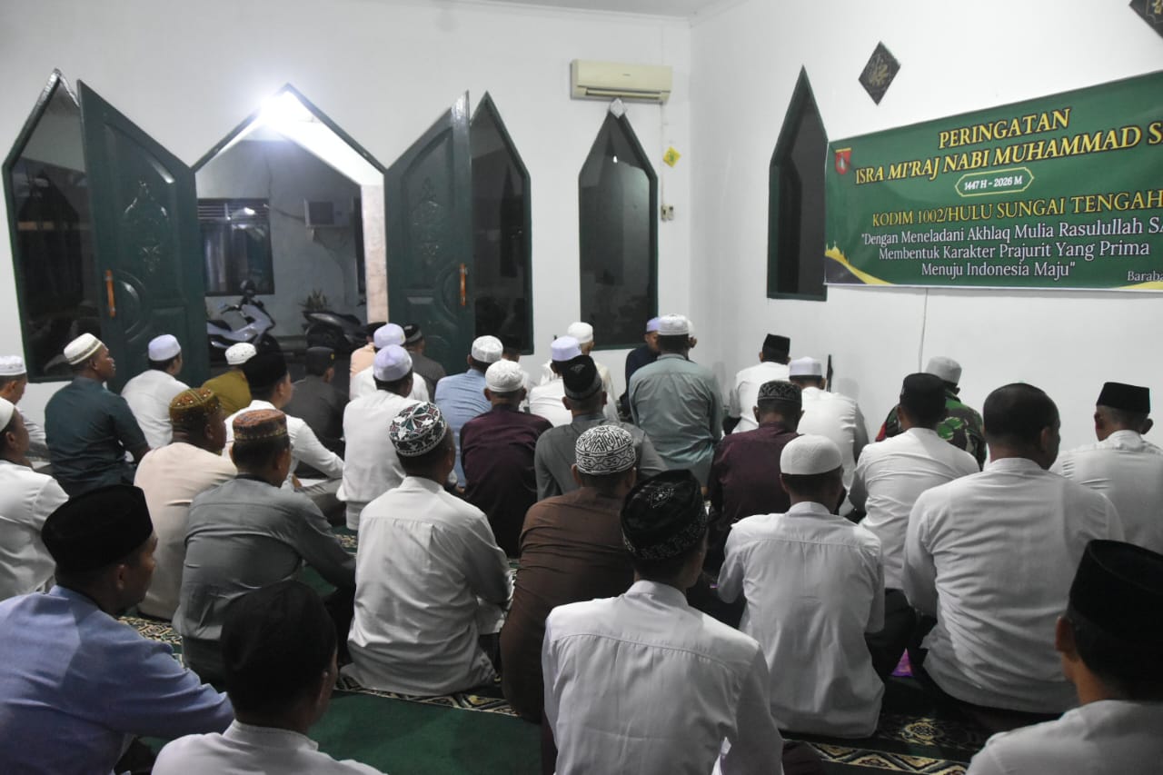 BARABAI –PW: Kodim 1002/Hulu Sungai Tengah (HST) memperingati Isra Mi’raj Nabi Muhammad SAW 1447 Hijriah/2026 M yang dilaksanakan di Musholla Al Khairul Fahmi Makodim 1002/HST, Kamis (15/01/2026) malam.