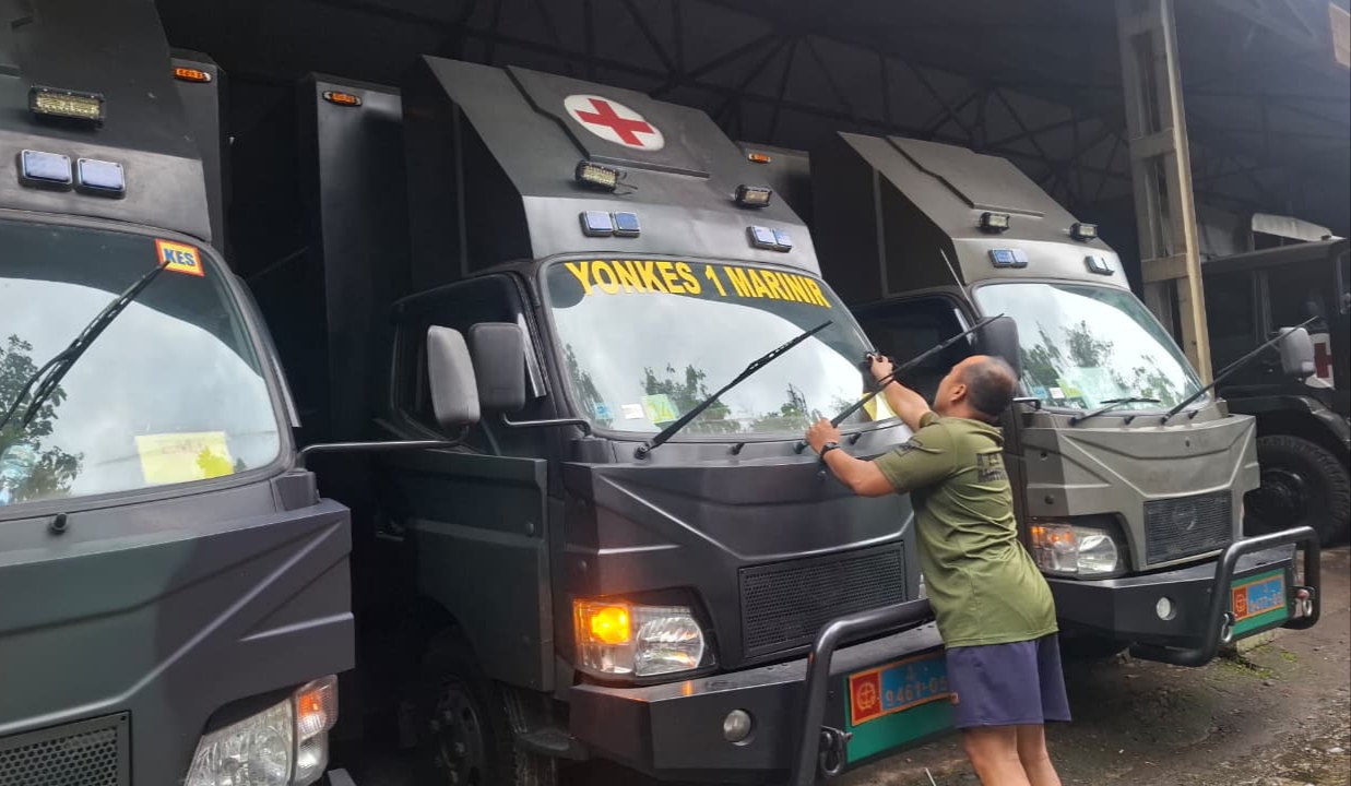 Jakarta, PW: TNI AL, Dispen Kormar, Pasmar 1. Dalam rangka menjaga kesiapan operasional dan mobilitas Satuan, prajurit Batalyon Kesehatan 1 Marinir (Yonkes 1 Mar) TNI Angkatan Laut melaksanakan Pemeliharaan dan Perawatan (Harwat) rutin terhadap kendaraan fungsional Rumah Sakit Lapangan (Rumkitlap). Kegiatan ini berlangsung di garase Yonkes 1 Marinir, Kesatrian Marinir Hartono, Cilandak, Jakarta Selatan. Kamis (15/01/2026).
