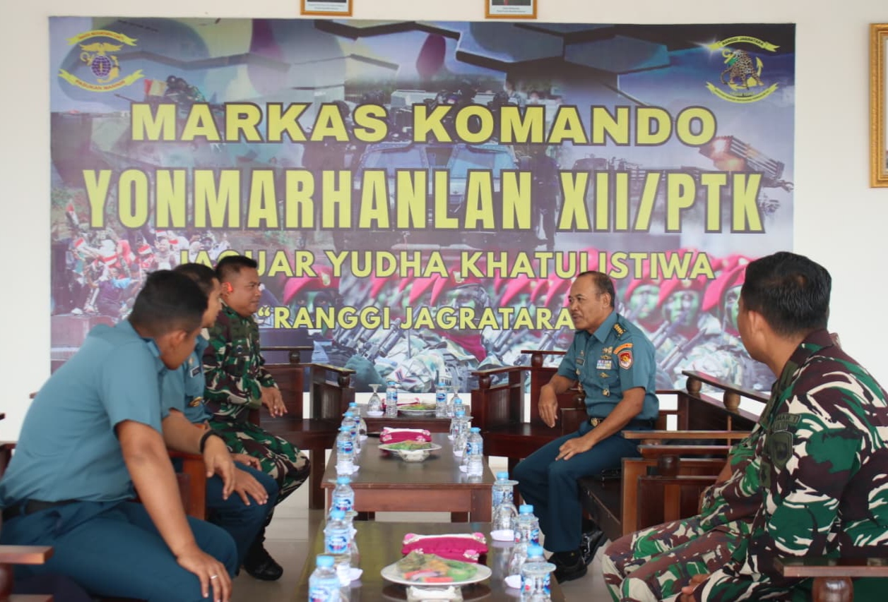 Mempawah, PW: TNI AL, Pasmar 1. Komandan Batalyon Marinir Pertahanan Pangkalan (Danyonmarhanlan) XII Letkol Marinir Saiful Anam, CTMP., menerima kunjungan kerja Ir Kodaeral XII Kolonel Laut (S) Kartoli, S.E., dan Dansathantai Kodaeral XII Kolonel Laut (P) Faisal, M.Tr.Hanla., M.M., CRMP., CIQaR., di Mako Yonmarhanlan XII Kesatrian Usman Harun Jl. Arani Kuala Secapah RT 11/RW 06, Kec. Mempawah Hilir, Kab. Mempawah, Kalimantan Barat, Rabu (21/01/2026).