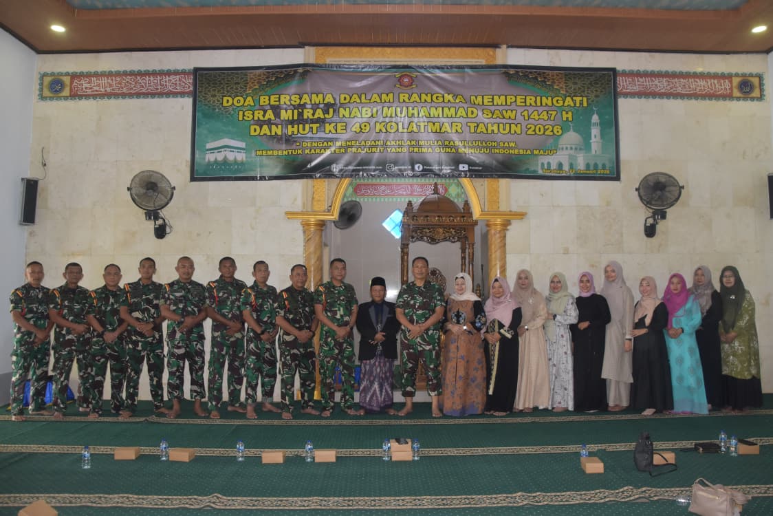 TNI AL, Dispen Kormar, Kolatmar (Surabaya) PW : Komando Latihan Marinir (Kolatmar) menggelar peringatan Isra’ Mi’raj Nabi Muhammad SAW 1447 Hijriah/2026 Masehi dengan tema “Meneladani Akhlak Mulia Rosulullah SAW, Membentuk Karakter Prajurit Yang Prima Guna Menuju Indonesia Maju”. Kegiatan berlangsung di Masjid Baitul Anwar, Kesatrian Ewa Pangalila, Gunungsari, Surabaya, Kamis (22/01/2026).