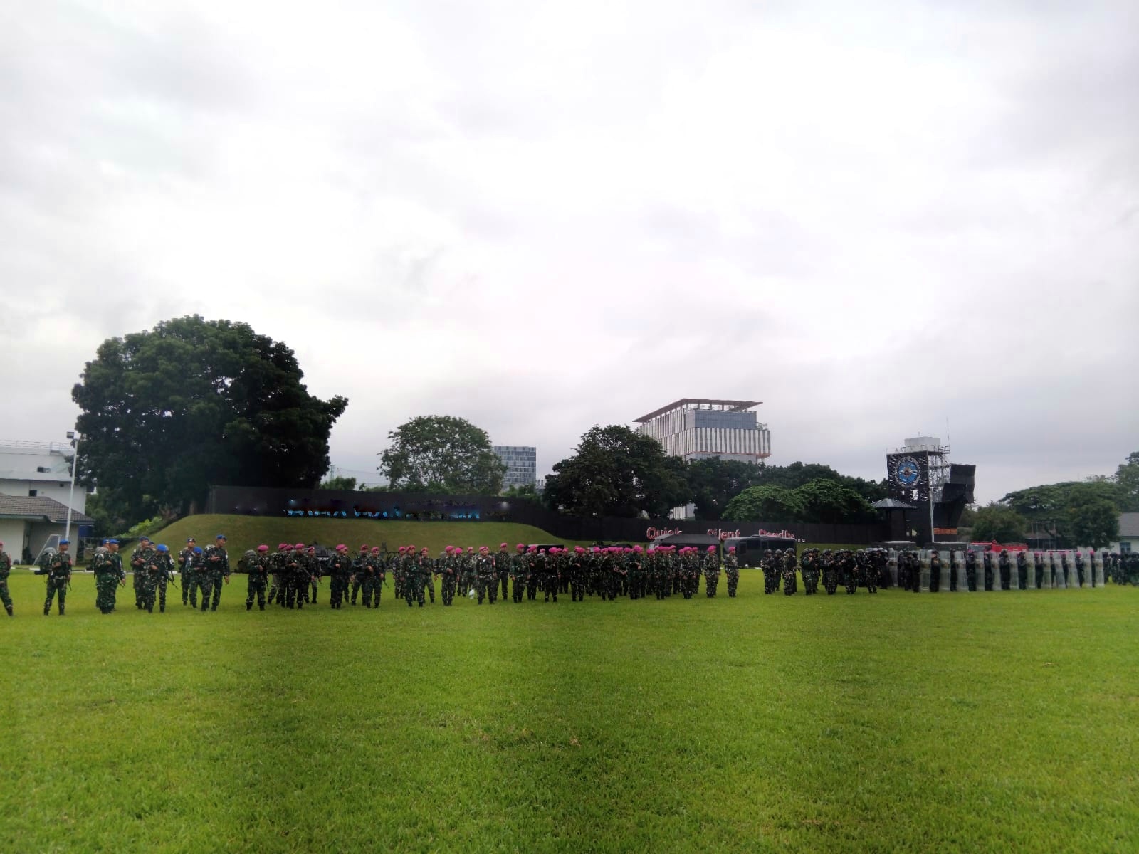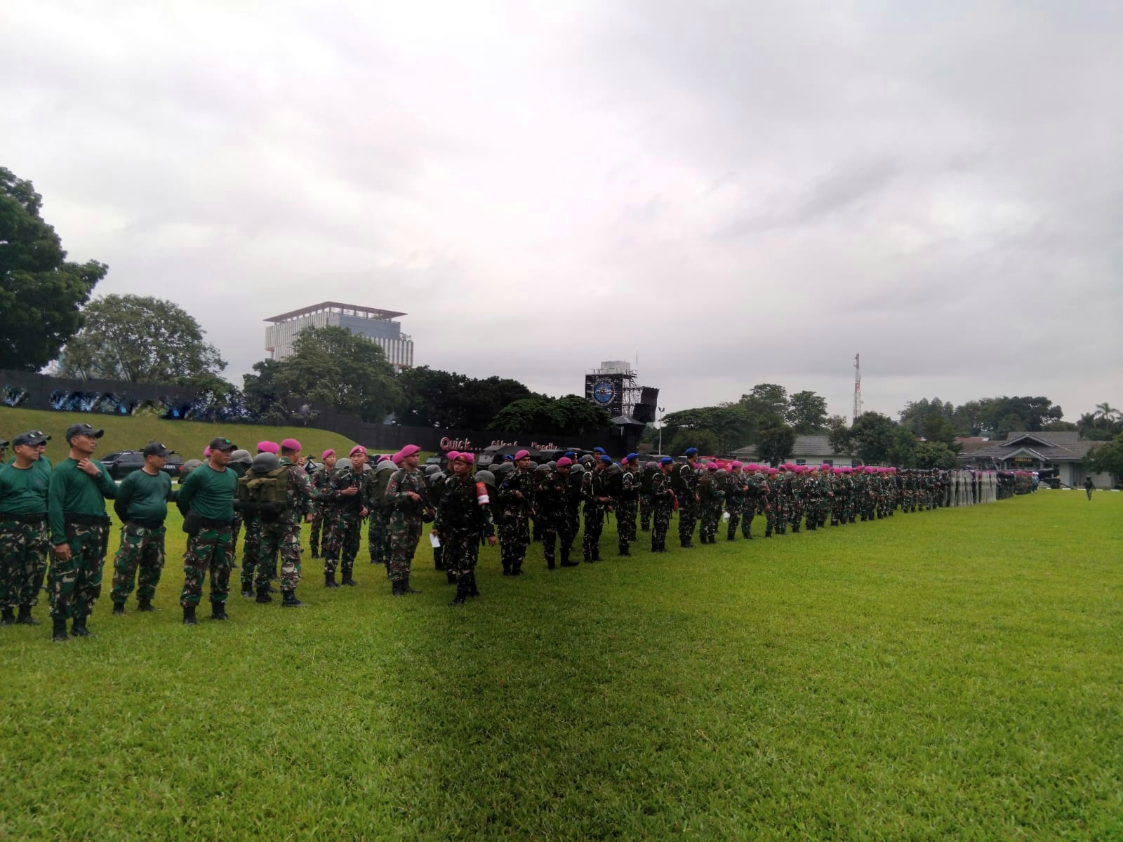 Jakarta, PW: TNI AL, Dispen Kormar, Pasmar 1. Prajurit Batalyon Tank Amfibi 1 Marinir (Yontankfib 1 Mar) terlibat dalam Apel gelar dalam rangka latihan Pengamanan Obyek Vital Nasional (PAM Obvitnas) di Cilandak, Jakarta Selatan, Selasa (27/01/2026).