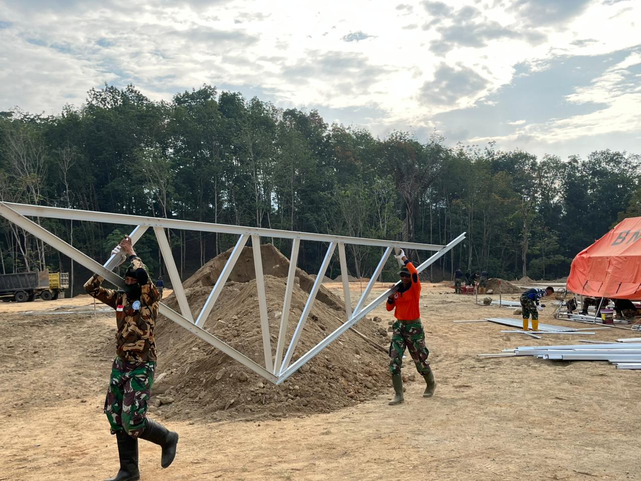 Sejak pagi hari, para prajurit Yonzeni 1 Mar melaksanakan pekerjaan mulai dari perataan lahan, pemasangan rangka bangunan, hingga penginstalan listrik. Seluruh kegiatan dilakukan dengan penuh disiplin, kerja sama, dan tetap mengutamakan faktor keamanan serta kualitas bangunan agar layak dan aman untuk dihuni masyarakat.