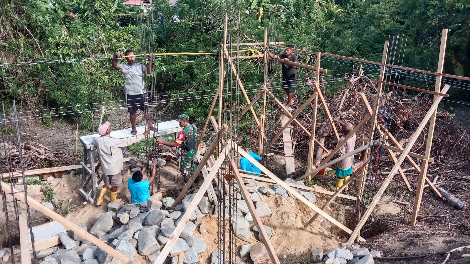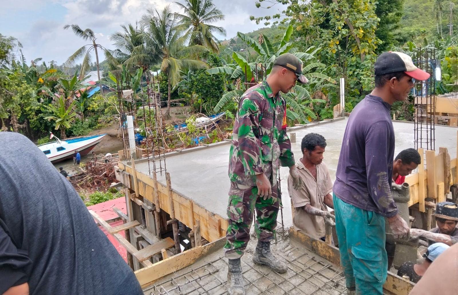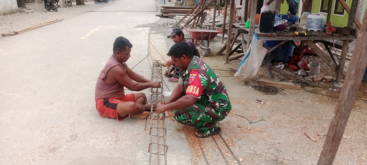 Pada kesempatan ini, Serda Sandri Pesireron bersama beberapa warga setempat membantu proses pembuatan dan pemasangan pondasi rumah milik salah satu warga binaan, Bapak Peri Siwalete.