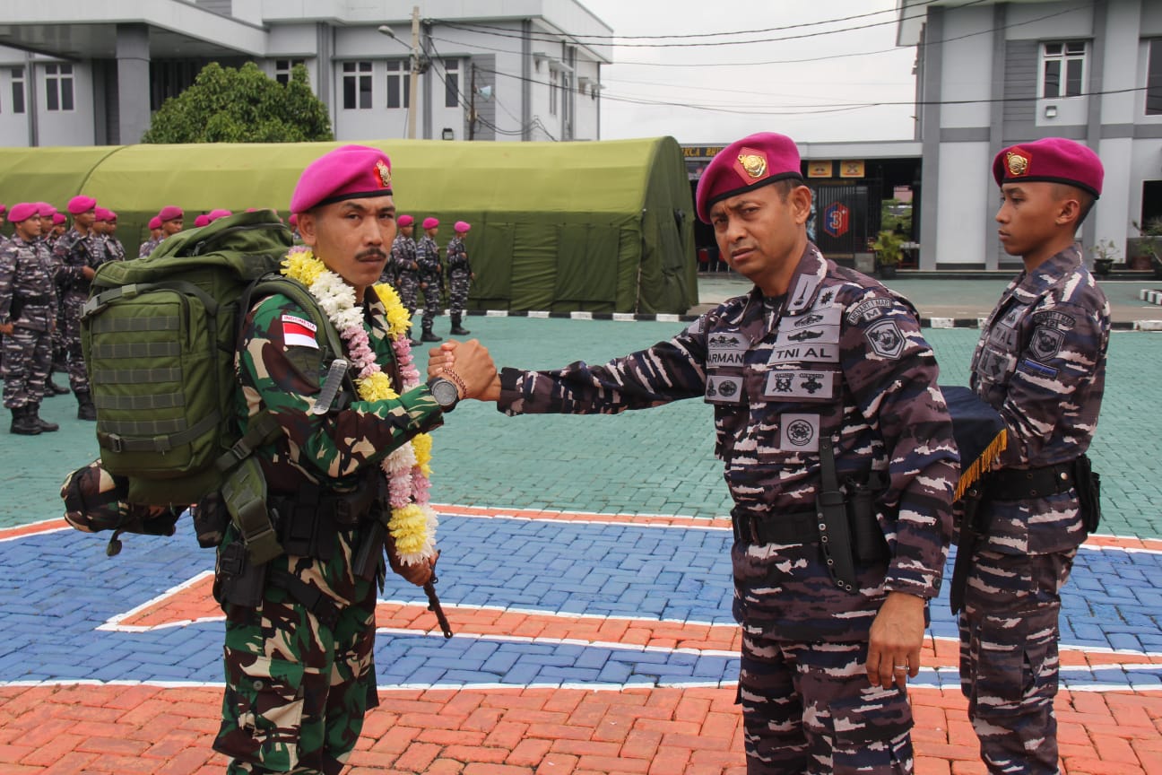 Dalam sambutannya, Letkol Marinir Sarman, M.Tr.Opsla., menyampaikan amanat dari Danmenart 1 Mar, apresiasi dan ucapan terima kasih kepada seluruh prajurit Satgas Hanrat LNU VI atas dedikasi, loyalitas, dan pengabdian selama melaksanakan tugas.