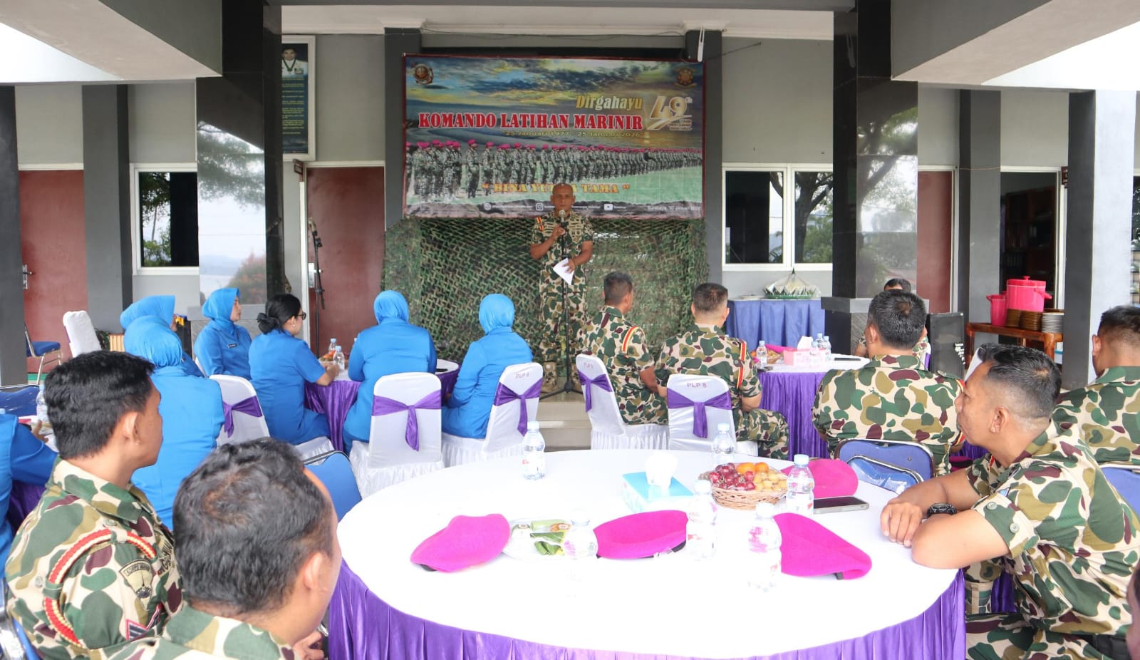 TNI AL, Dispen Kormar (Lampung) PW : Dalam rangka memperingati Hari Ulang Tahun (HUT) ke-49 Komando Latihan Marinir (Kolatmar), Komandan Pusat Latihan Pertempuran Marinir (Puslatpurmar) 8 Teluk Ratai beserta seluruh prajurit melaksanakan acara puncak peringatan HUT Kolatmar yang digelar di Mako Puslatpurmar 8 Teluk Ratai, Kecamatan Teluk Pandan, Kabupaten Pesawaran, Lampung, Jumat (30/01/2026).